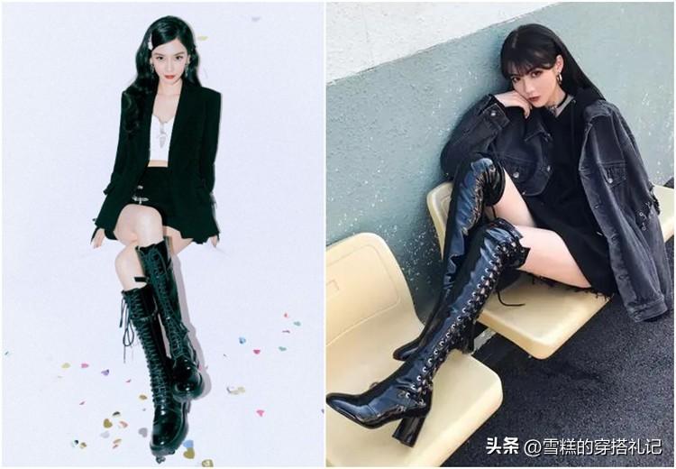 長靴是可以起到拉高和顯瘦的作用的,但是最好選擇基礎純色款,並且靴筒不要長到誇張的類型。繫帶的長靴在設計上本身就顯的很繁瑣,看着容易引起視覺混亂,如果搭配過膝的長靴,長度愈加誇張,穿腳上直接就是拉垮整體,視覺重心完全放在這雙鞋上。尤其是小個子,穿上更顯小矮子即視感。