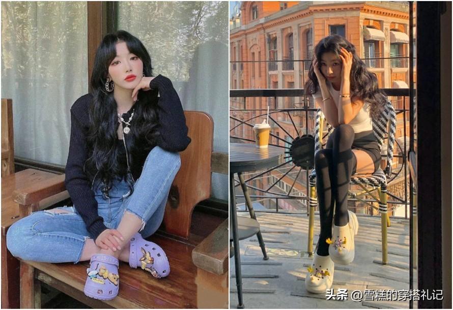 洞洞鞋就是家居拖鞋即視感,被帶成了一種流行風氣,但是上腳真的沒有那麼好看,甚至會顯得不倫不類,無論搭配什麼風格的服裝都顯得很違和。並且流行的洞洞鞋都是帶着超誇張的厚底,以及表面累贅的配件裝飾,風格顯土氣並且難搭配。