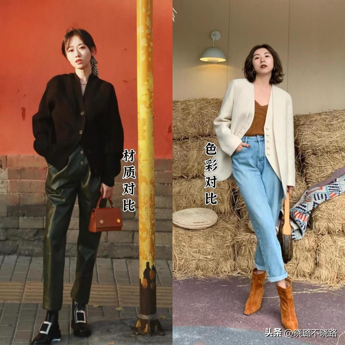 上衣下裝的搭配,一定要有明顯的對比效果,比如色彩明暗、深淺的關係,或者啞光和漆皮的材質對比,都能夠成功的豐富造型,讓原本單調的穿搭,看上去更加有趣。