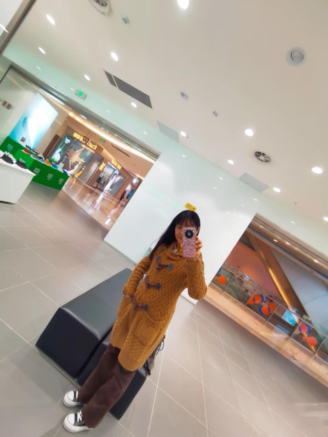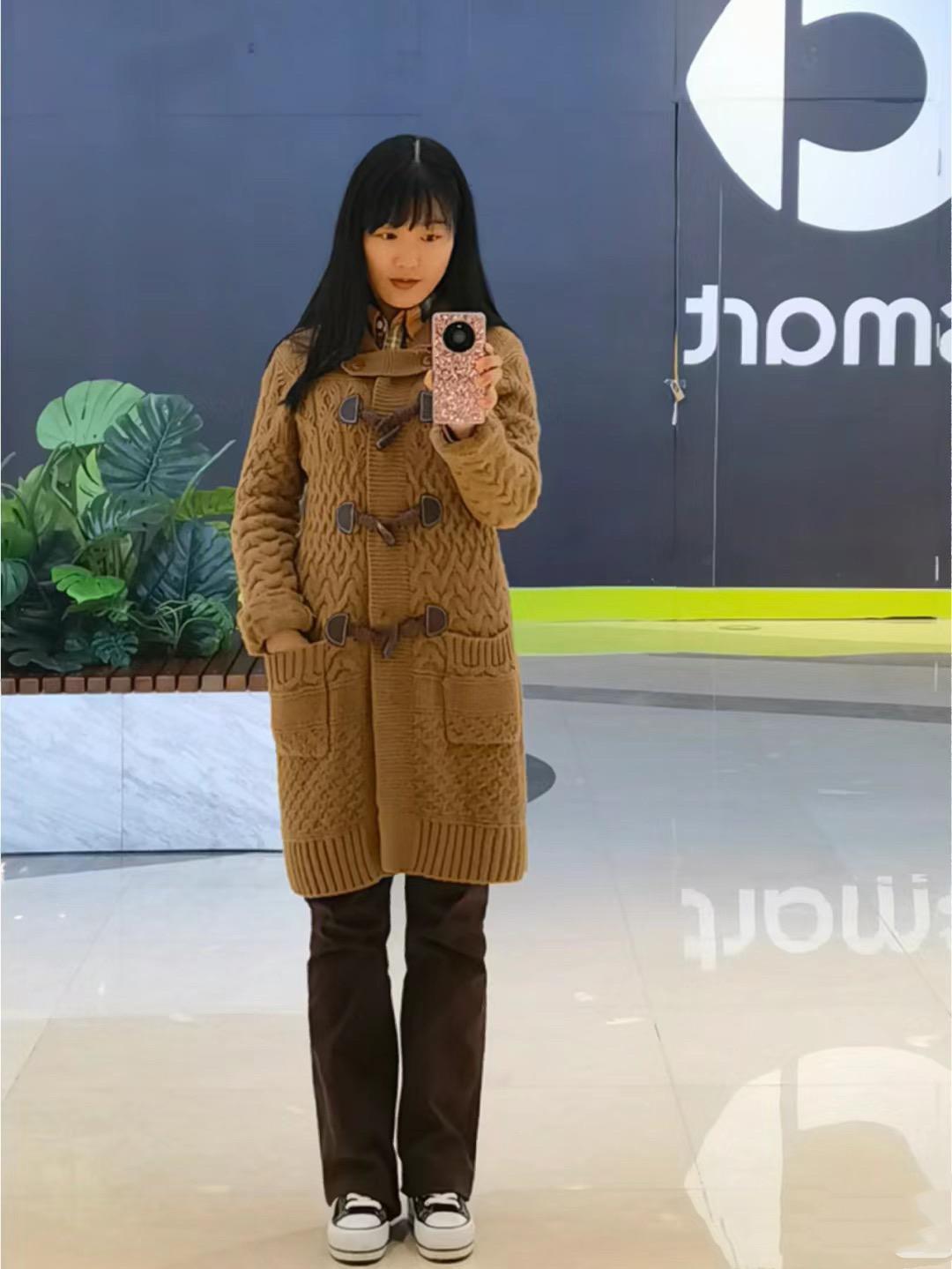 天冷的時候,也買不起羊毛大衣、或者是貴价的羽絨服,就給自己置辦了遮掩意件厚厚的牛角扣毛衣。