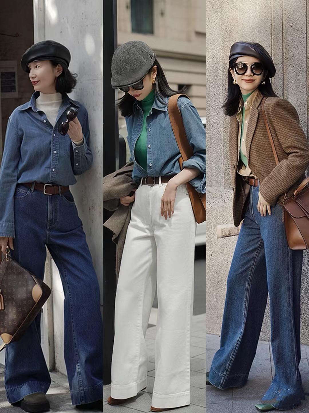 一身牛仔藍,自帶復古氛圍,很有腔調感又特別的洋氣。我們穿着牛仔藍的時候,襯衫和牛仔褲儘量通過色彩差別,營造出層次感。