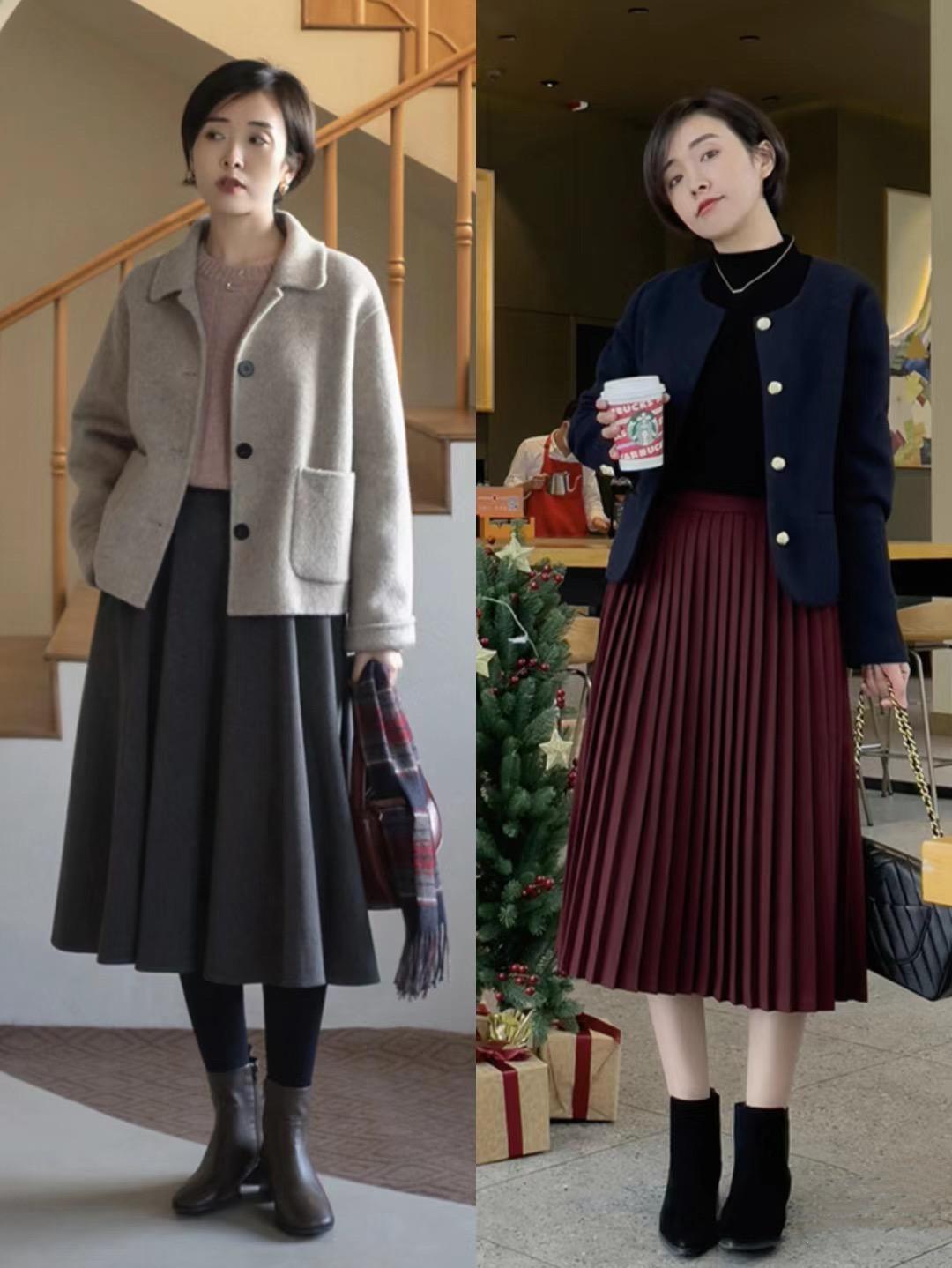 高腰的傘裙、百褶的裙襬,大量感的款式浪漫又顯瘦。尤其是大裙襬的傘裙配上短靴,視覺上的鬆緊對比、顯的腳踝更纖細,身材更輕盈。