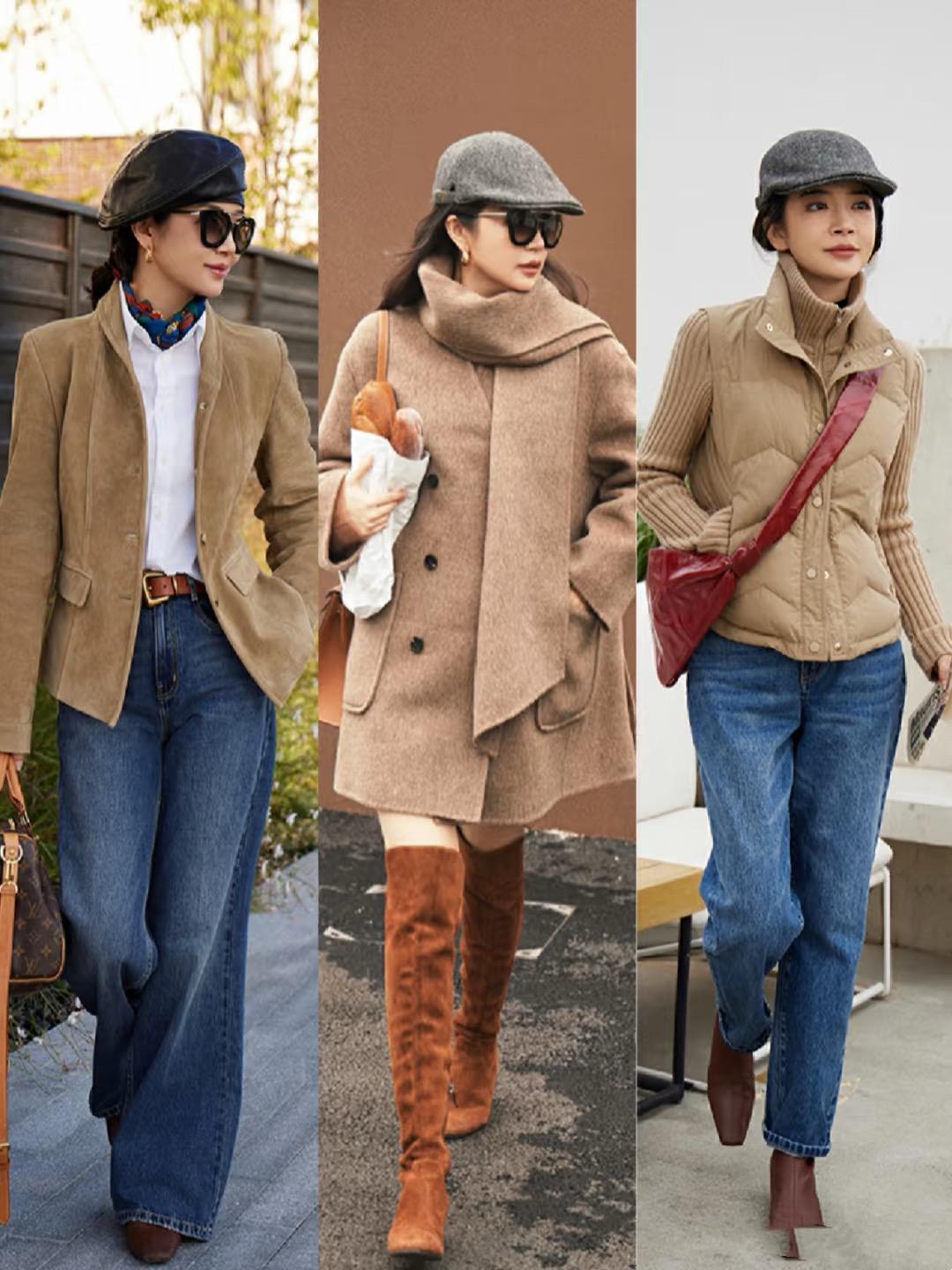 比如貝雷帽、墨鏡、耳環、腰帶、包包,都可以給簡潔的穿搭。比如貝雷帽配棕色外套,又帥又美還很洋氣。