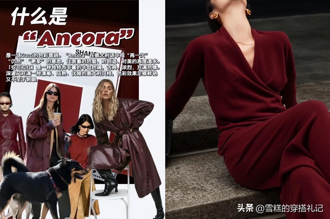 安可拉紅色不會像正紅色那麼顯眼,顏色偏暗,有種低調淡雅且復古的氣質。這種顏色看起來能給人深邃悠遠的感覺,融入到穿搭當中,提升衣服的質感,散發獨特的精緻,不會有暗色系那麼沉悶。這種顏色還有成熟穩重的感覺,在秋冬穿這個顏色具有溫度感,可以抵禦寒冷。