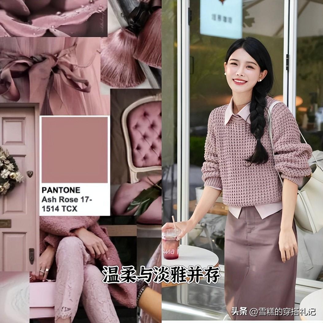 乾淨玫瑰色雖然有了灰調的加入,增加了顏色的高級感和檔次,但是不注意衣服的材質挑選,就不能將這種顏色的時髦好看展現出來,材質差的上身和穿基礎的粉色一樣灰呈現刻意扮嫩和廉價感。