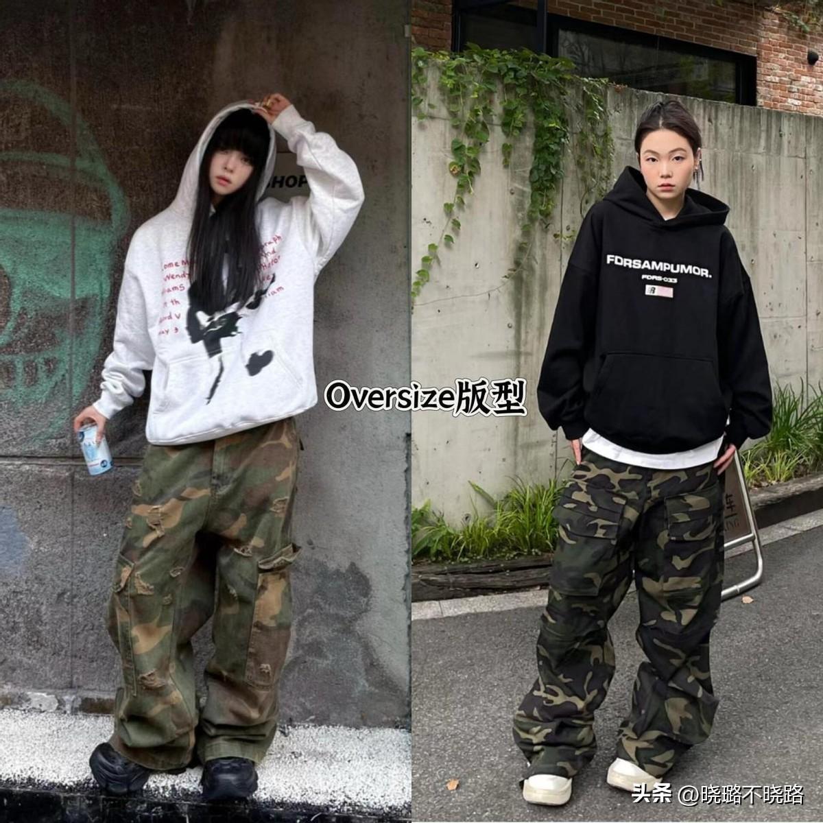搭配方案3.Oversize的連帽衛衣+迷彩褲+廚師鞋