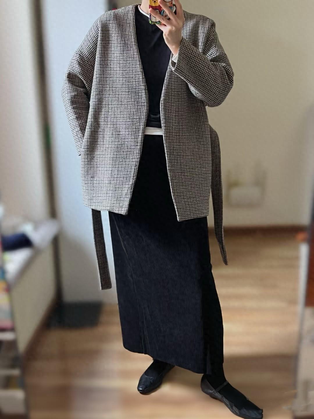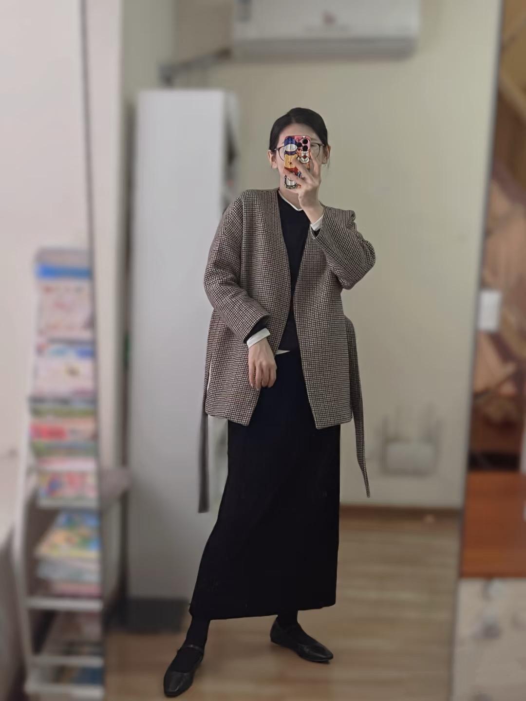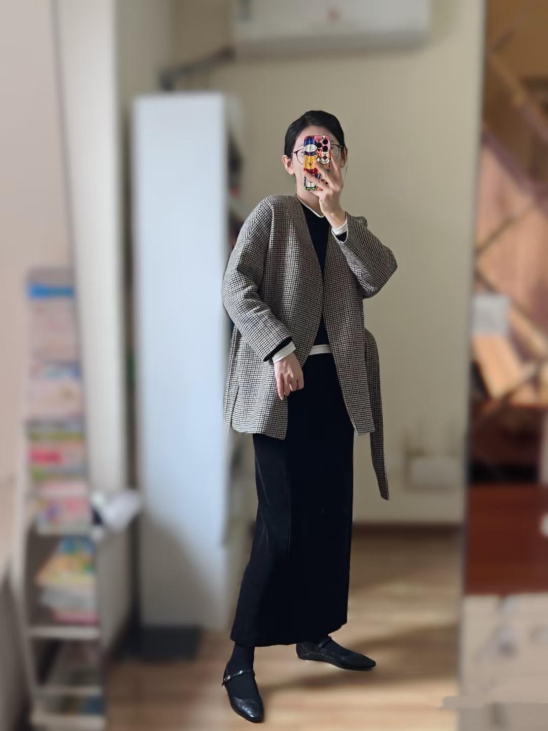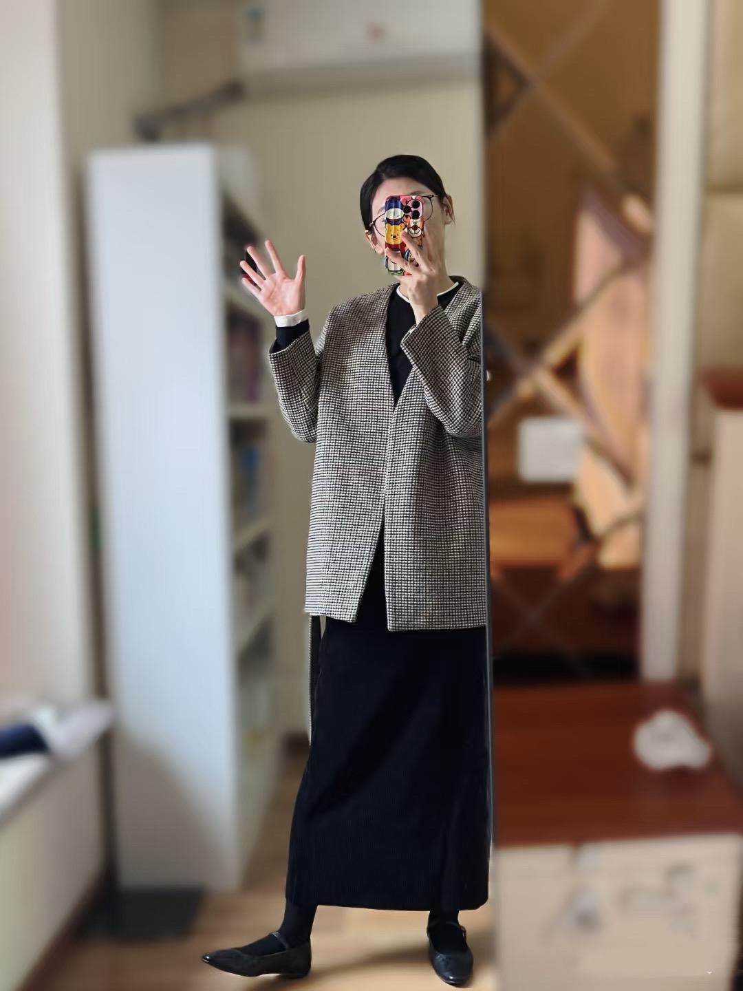 這件呢大衣,是有點復古的款式。很經典的千鳥格,不單調也不張揚。不管是上班、休閒、還是逛街、約會都可以穿。