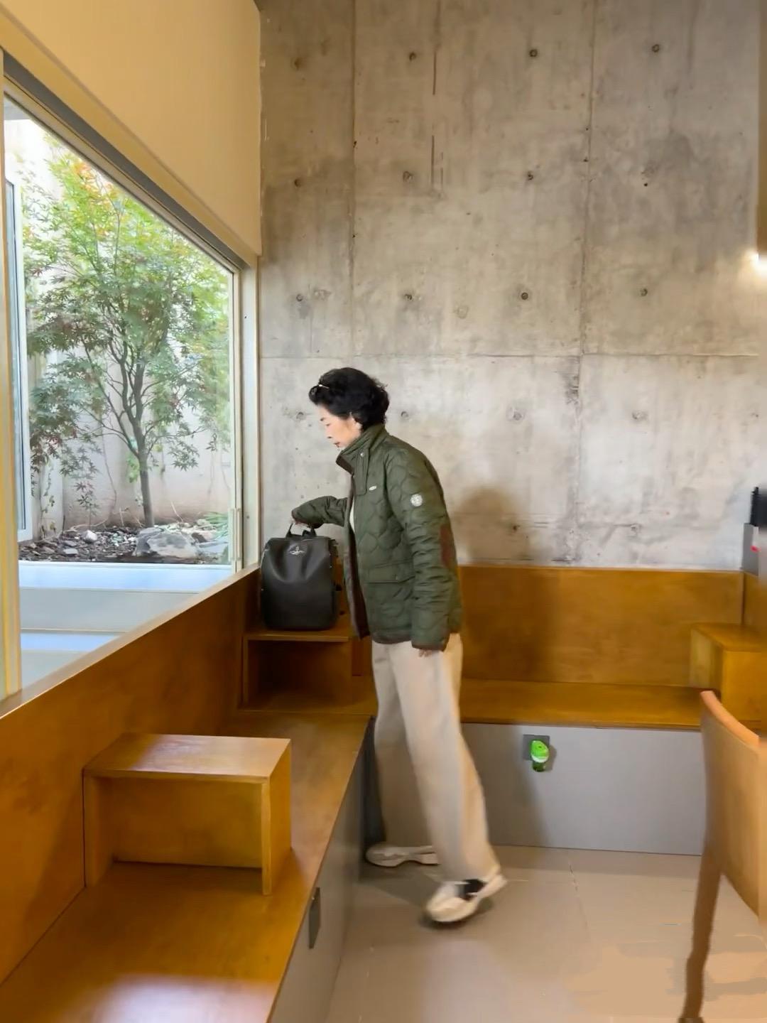 這件絎縫的羽絨服,真的是深得我心。看到很多年輕人都穿這樣的外套,只不過她們喜歡淺色系,我這一件顏色比較深,相對低調保守一些。
