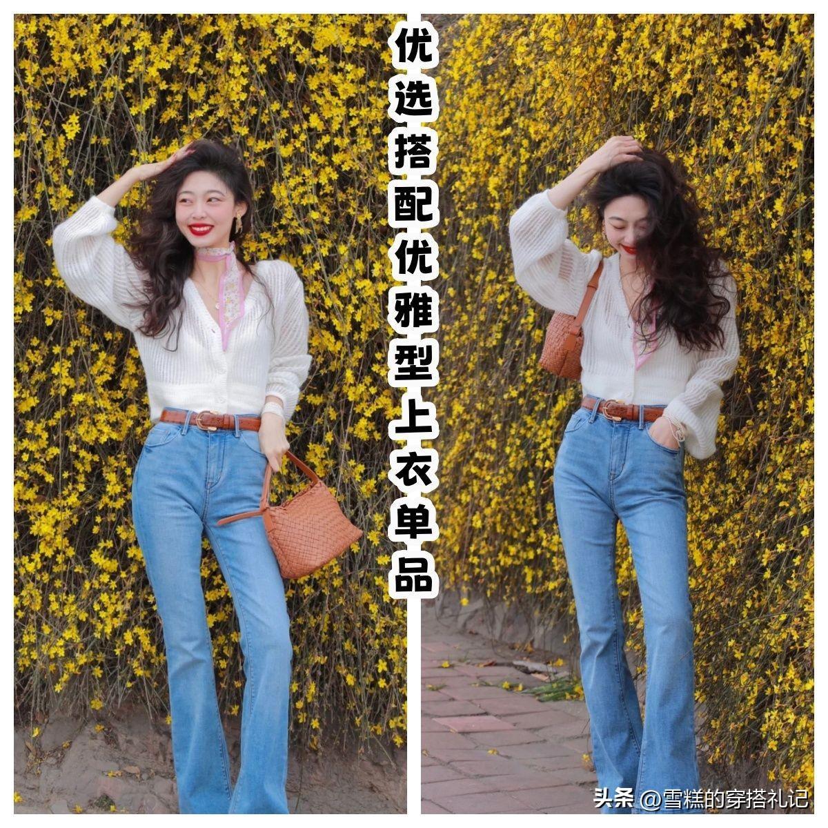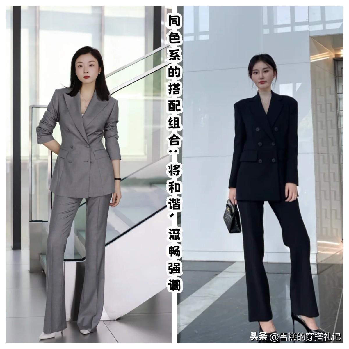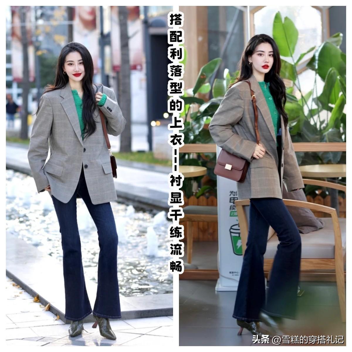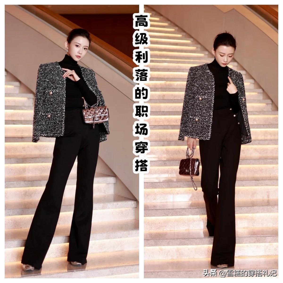 如果整體的搭配想要呈現出來和諧又流暢的視覺效果,那麼建議大家上半身就可以選擇像小香風或者是西裝這樣的系列自上而下的線條走向非常的利落好看,以及這樣的穿搭還能夠襯托一定的顯瘦效果喲。