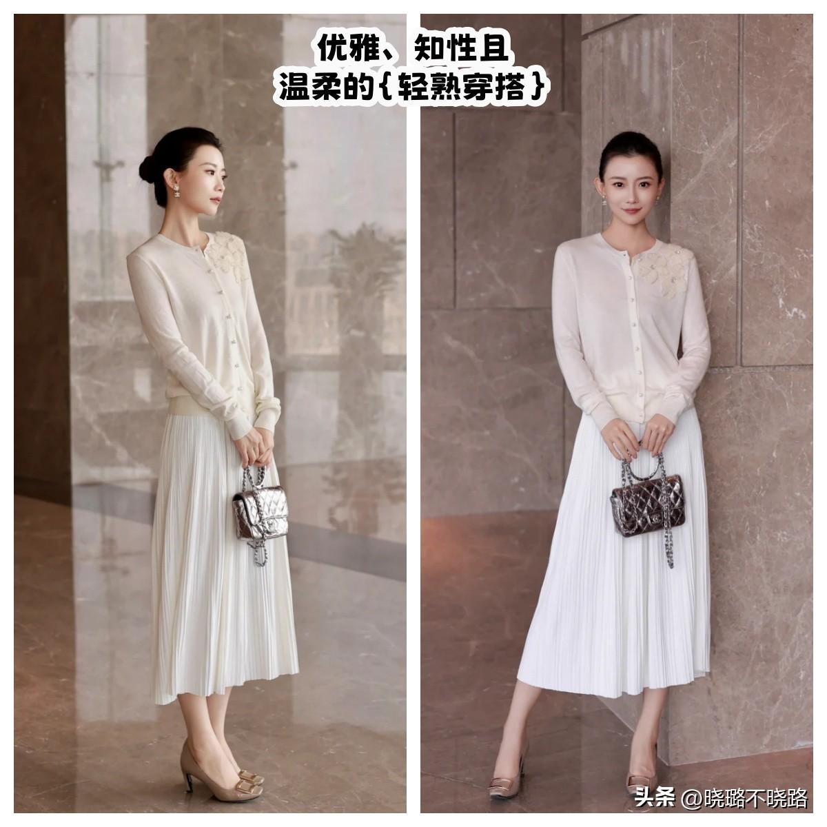 想要呈現非常知性的女性魅力,就建議大家這樣的穿搭可以多多的襯托比較輕熟的氣質狀態,色系就將基礎的淺色調進行運用,並且優選搭配標準比例的裙裝系列。