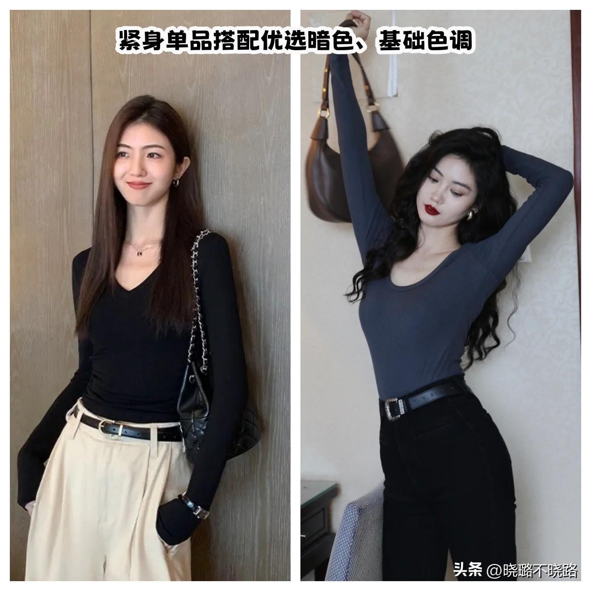 讓我們上半身的單品選擇的是比較修身或者是貼身的設計類型,那麼對於我們整個上半身的線條走向它絕對是能夠將其優化和勾勒出來的。在色系的選擇當中就推薦大家可以將暗色調或者是一些基礎性搭配,視覺上更爲顯瘦、所優化出來的線條更具有優勢。