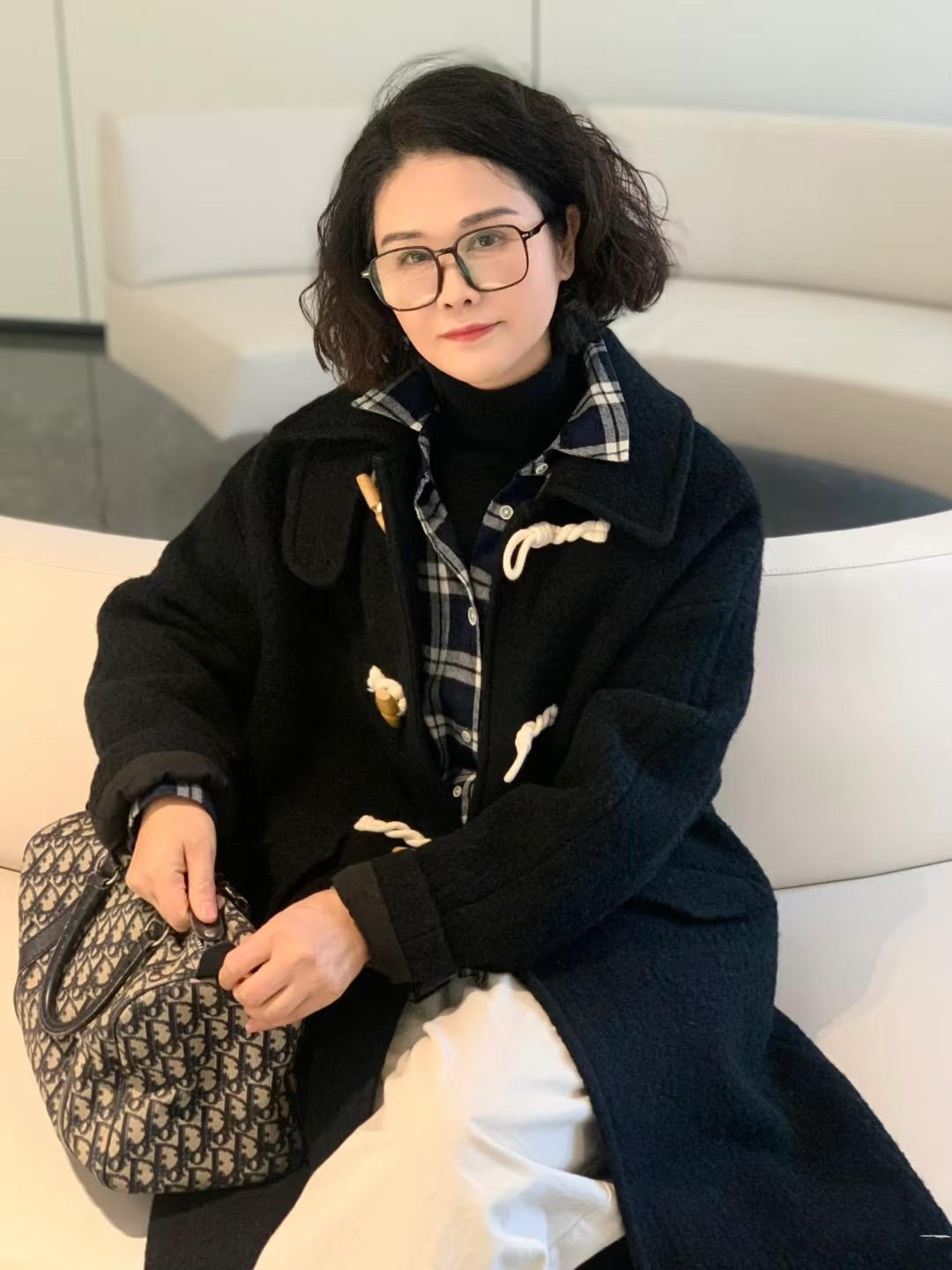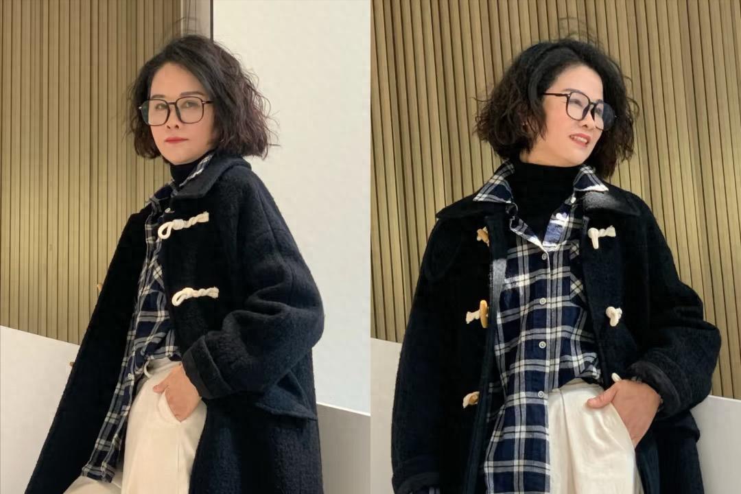 其實這種很有質感的牛角扣,並不會顯得格外扮嫩。我覺得50歲的年紀,穿牛角扣大衣也沒什麼違和感。