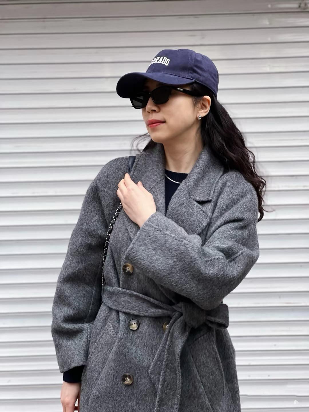 穿這件呢大衣的時候,我會選擇一些更加年輕化、也時髦、顯氣質的配飾。比如洋氣又顯臉小的鴨舌帽、精緻的小米粒項鍊、酷颯的墨鏡等等。