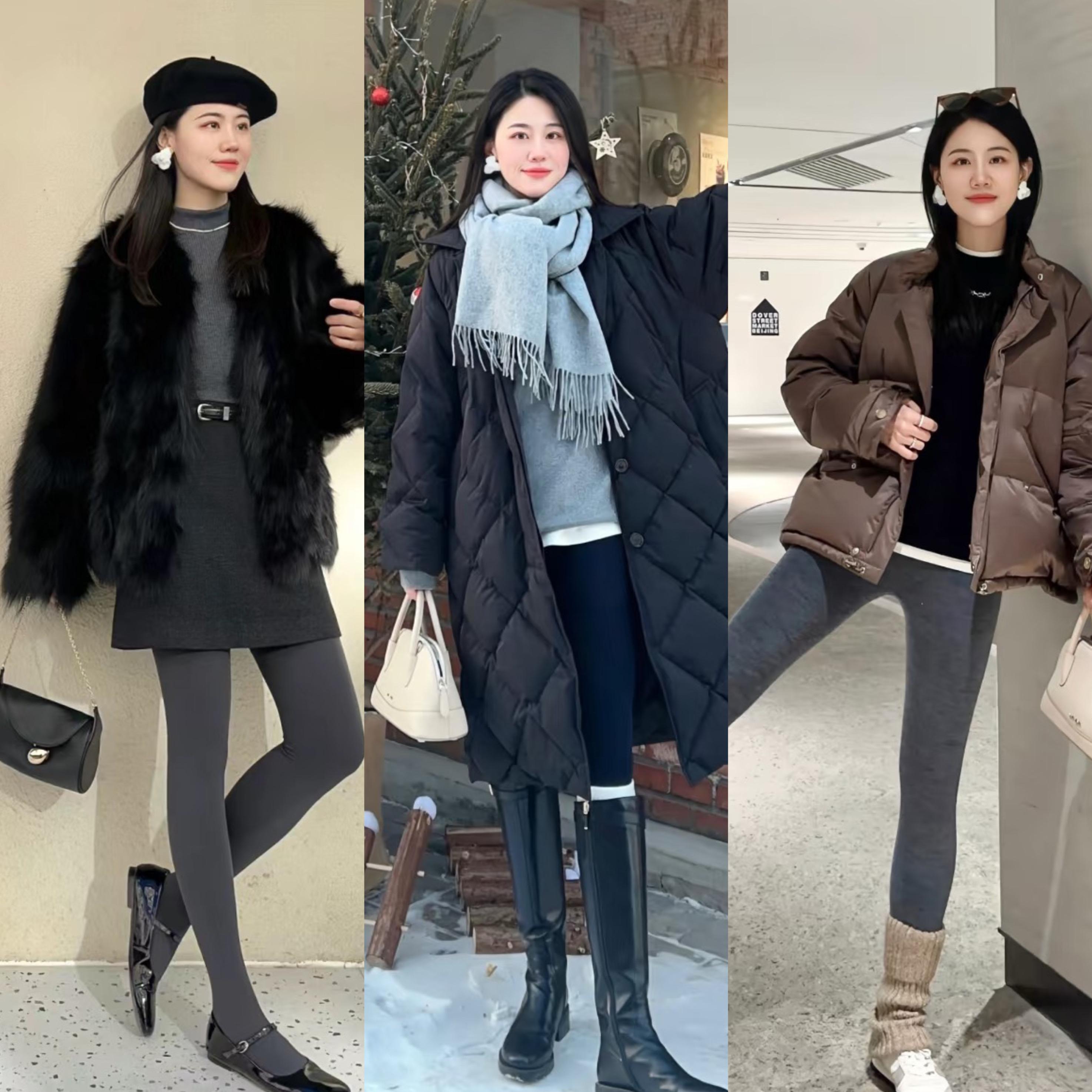 黑色打底褲/瑜伽褲,儘量選擇彈壓力比較強的款式,會更充分的修飾腿型、顯的雙腿纖細。黑色打底褲/瑜伽褲配堆堆襪來穿,顯的雙腿又細又長,還洋氣保暖。