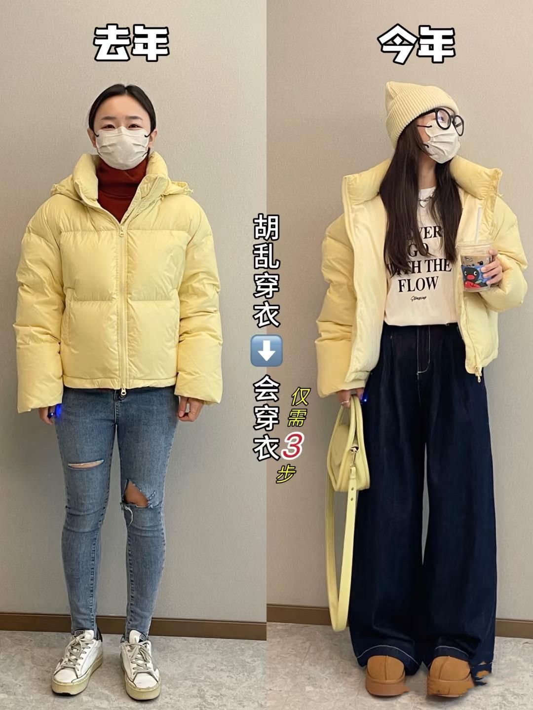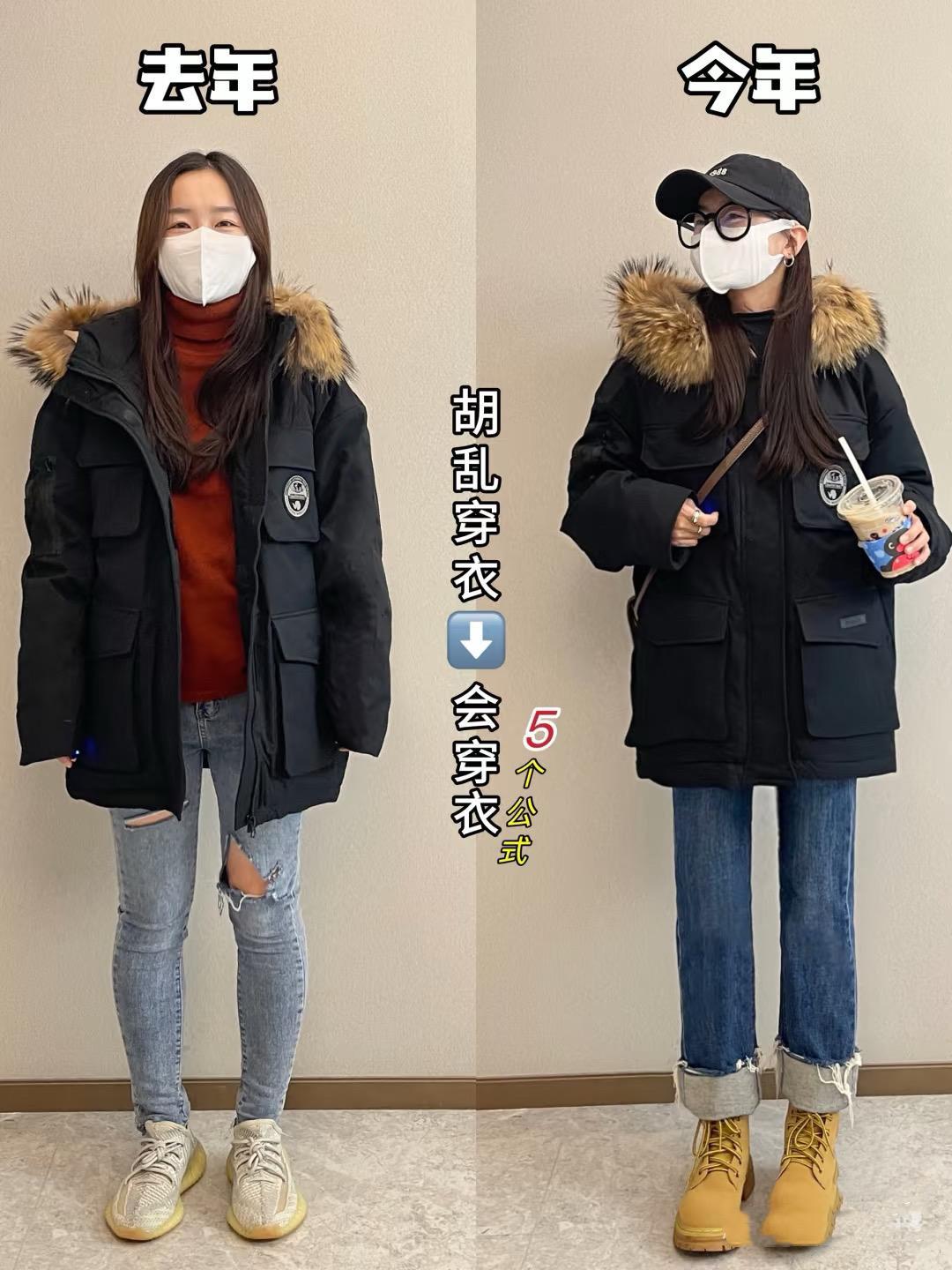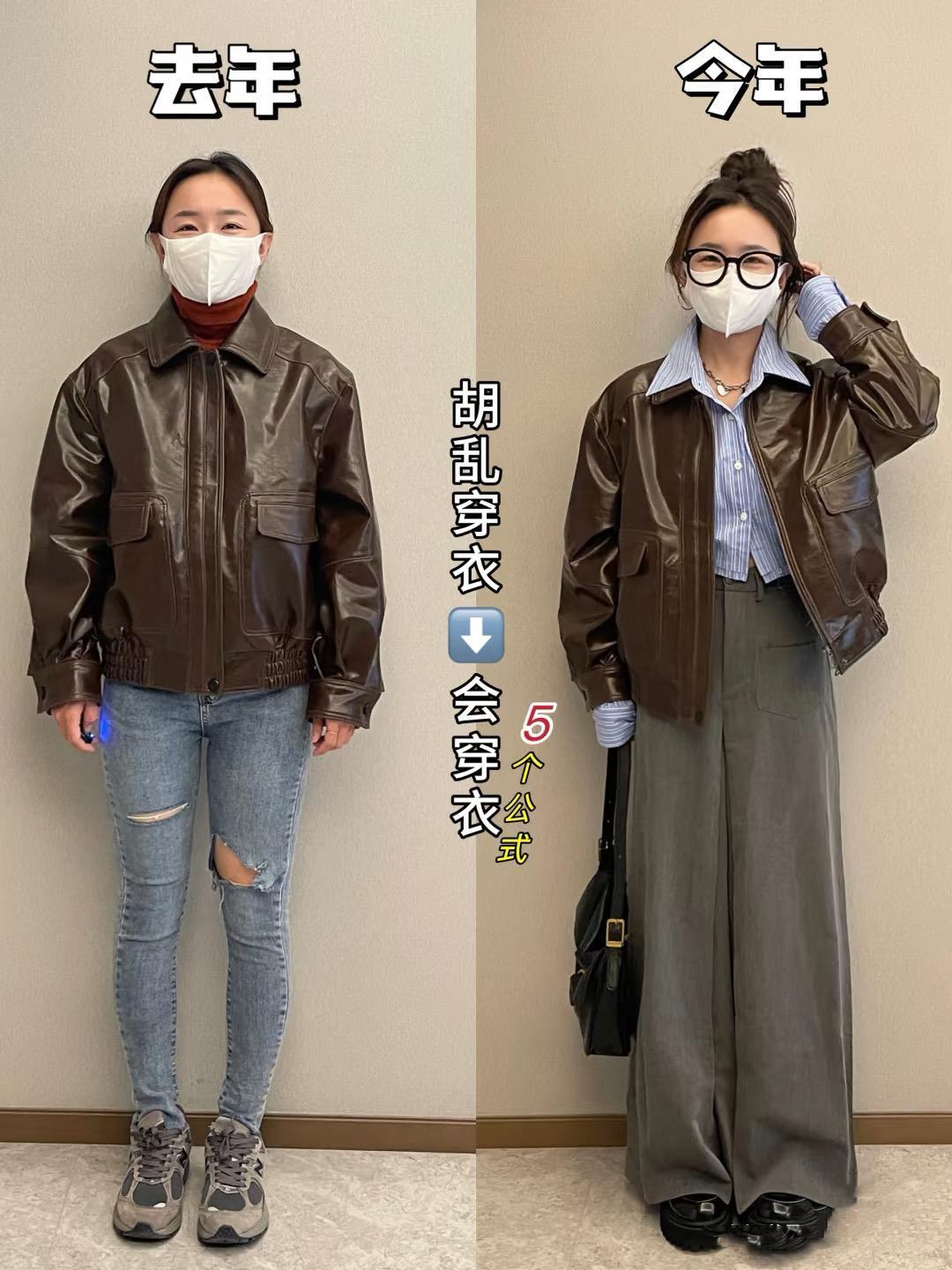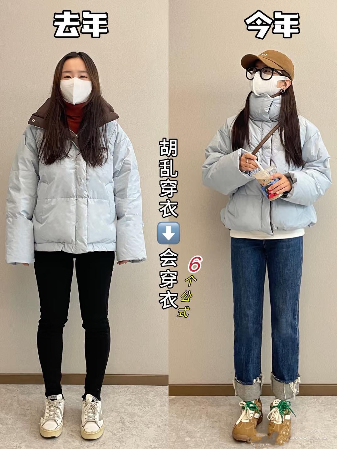 一位博主,去年的穿着還很土,今年的打扮就潮流洋氣起來。明明還是穿了同一件衣服,卻給人特別強的反差感。