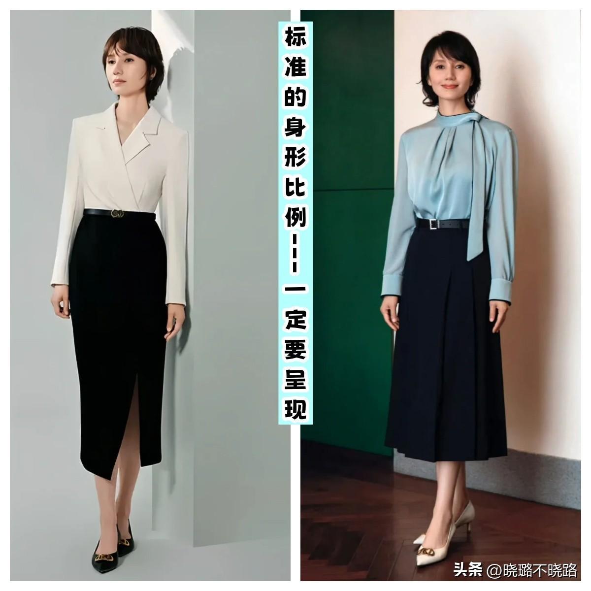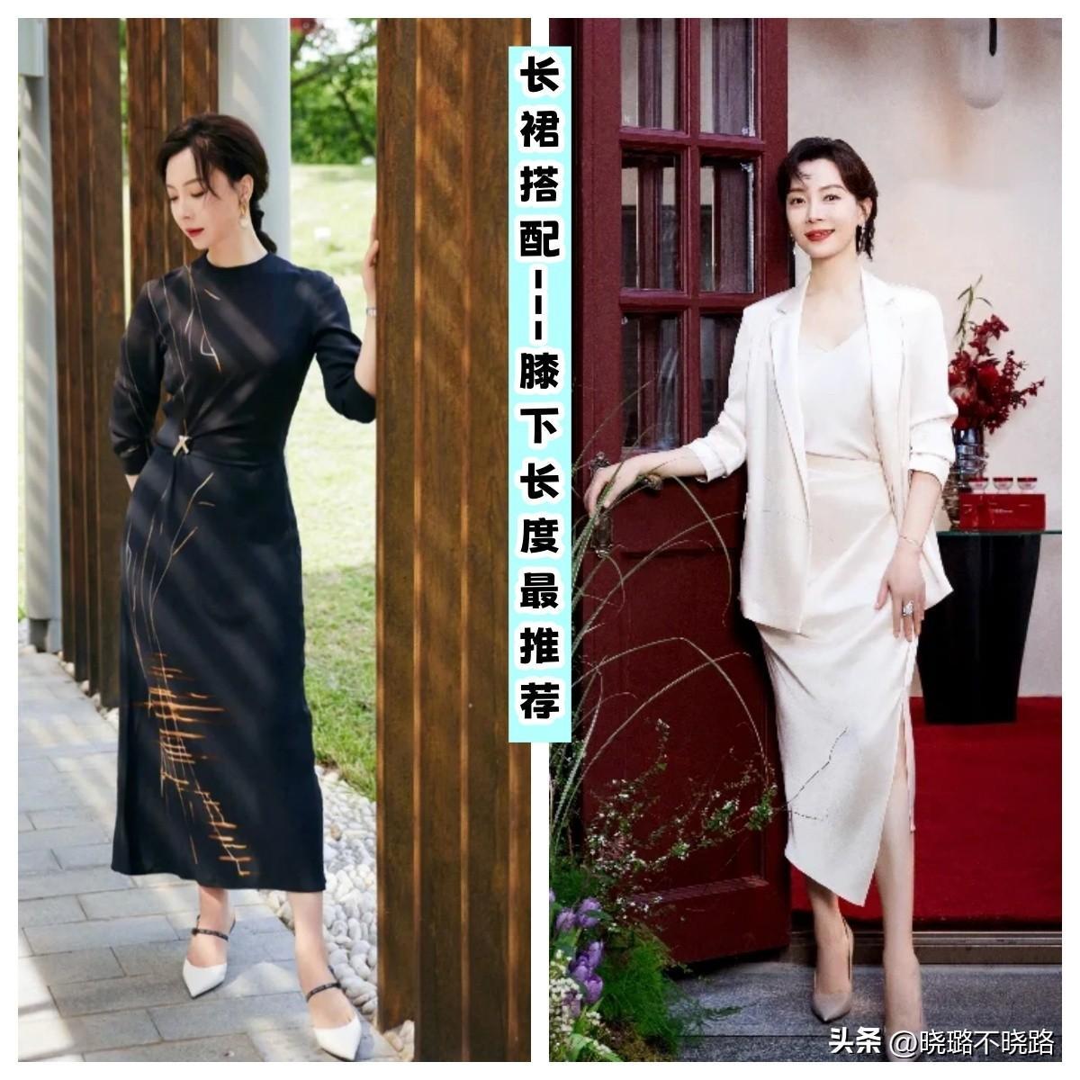 真的很建議各位女性,一旦到了四五十歲這個年齡階段還是要優先於選擇長款的裙裝進行搭配,尤其是在膝蓋以下的設計還能夠露出來一小截腳踝以及小腿的部位,整體的28分或者是37分的比例非常的極具優勢,拉長腿型的縱向長度很好看呢。