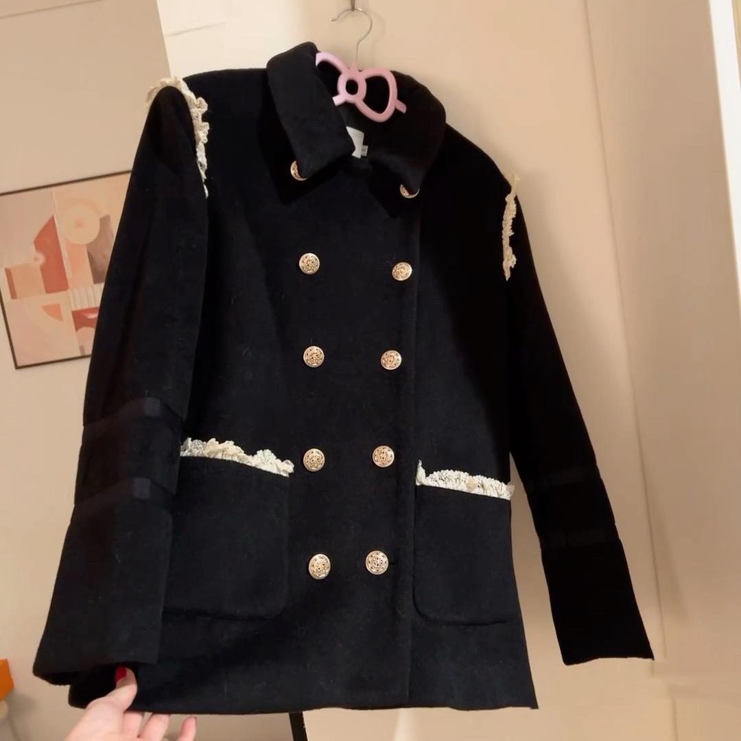蕾絲、金屬紐扣點綴的黑色小香風外套,當時買的時候也一千多呢,現在來看真的好土氣呀。