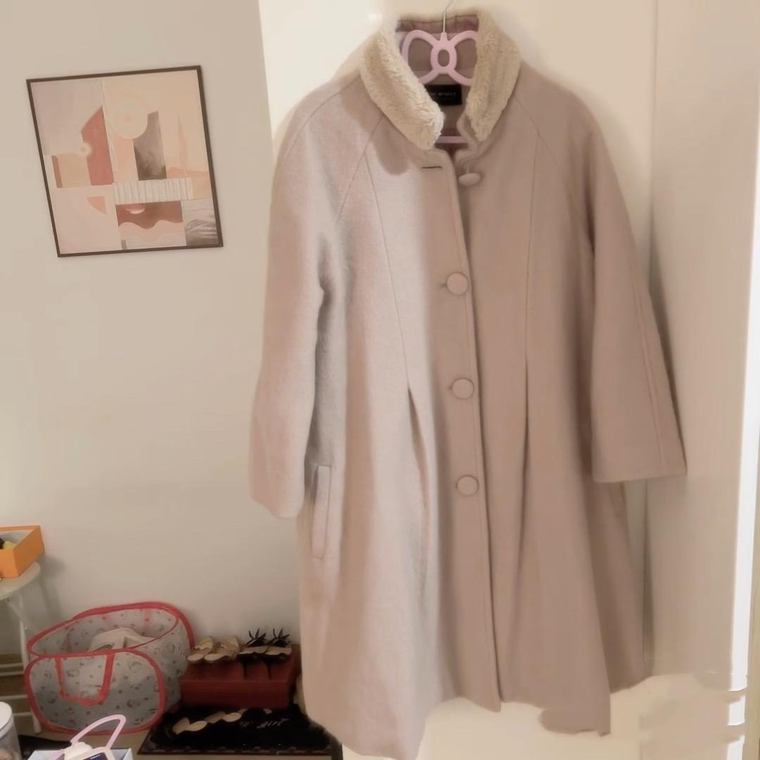 這件帶着毛毛領的大衣,也買了幾年了,羊絨的面料、款式比較老氣、但真的很上檔次、穿上也顯氣質。
