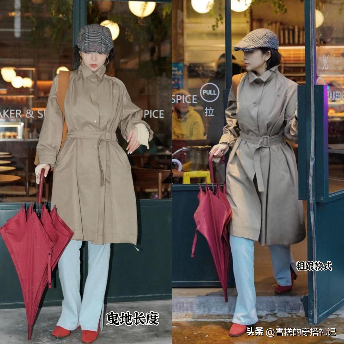 挑選短款風衣的前提,是你的骨架要足夠小,大骨架身材的女性,穿短風衣會更顯胖,而且還非常小氣不夠得體,相比之下,小骨架身材穿遮臀風衣會更有氣質。