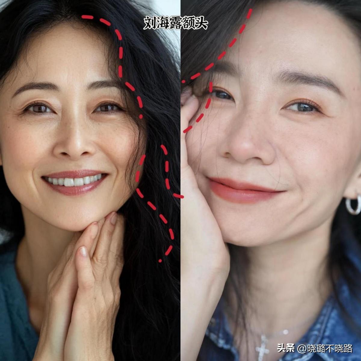 化好妝穿好衣服之後,就需要打理好髮型了,中年女人挑選髮型的時候,要避免劉海過於厚重的問題,選擇三七分、偏分或者斜劉海,露出額頭位置,清爽又減齡。
