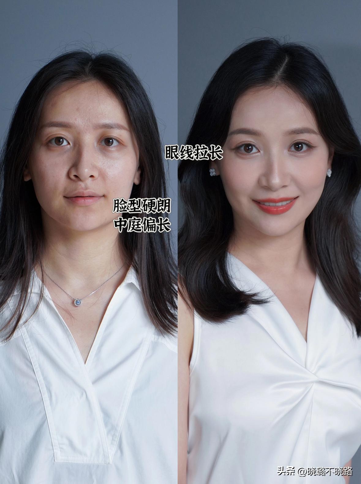 臉長>臉寬的女性,中庭一般都比較偏長,一旦妝容和髮型沒選對的話,就會瞬間顯老10歲,中庭比較長的女人,眼間距不能太窄,否則面部比例協調性會更差。