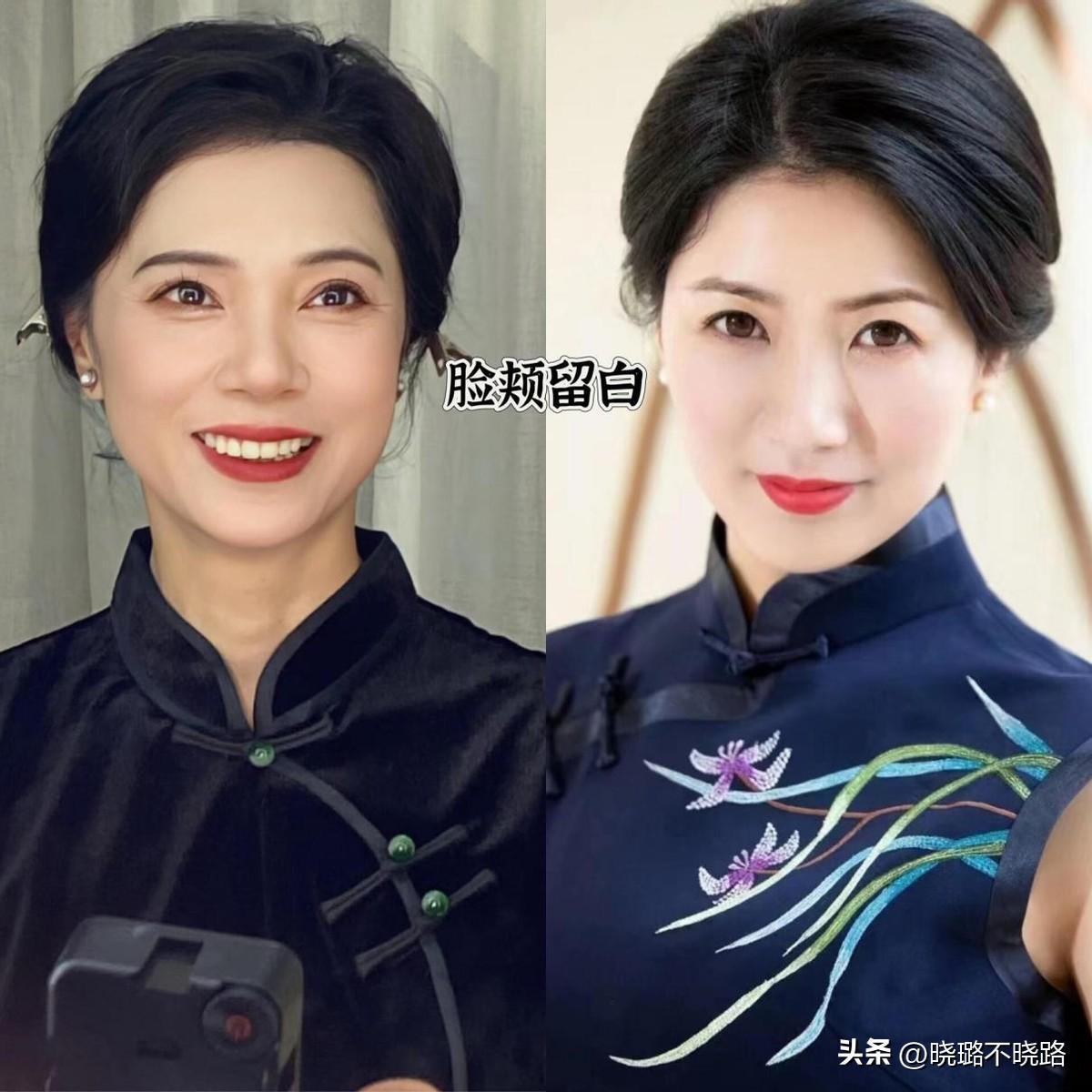 中年女人化妝還要懂得留白,特別是面中的位置,如果腮紅打的太重,就會給人一種老土俗氣的感覺,視覺上還非常顯臉大。裸粉色腮紅輕輕掃在臉頰的位置,纔會給人一種白裏透紅的即視感。