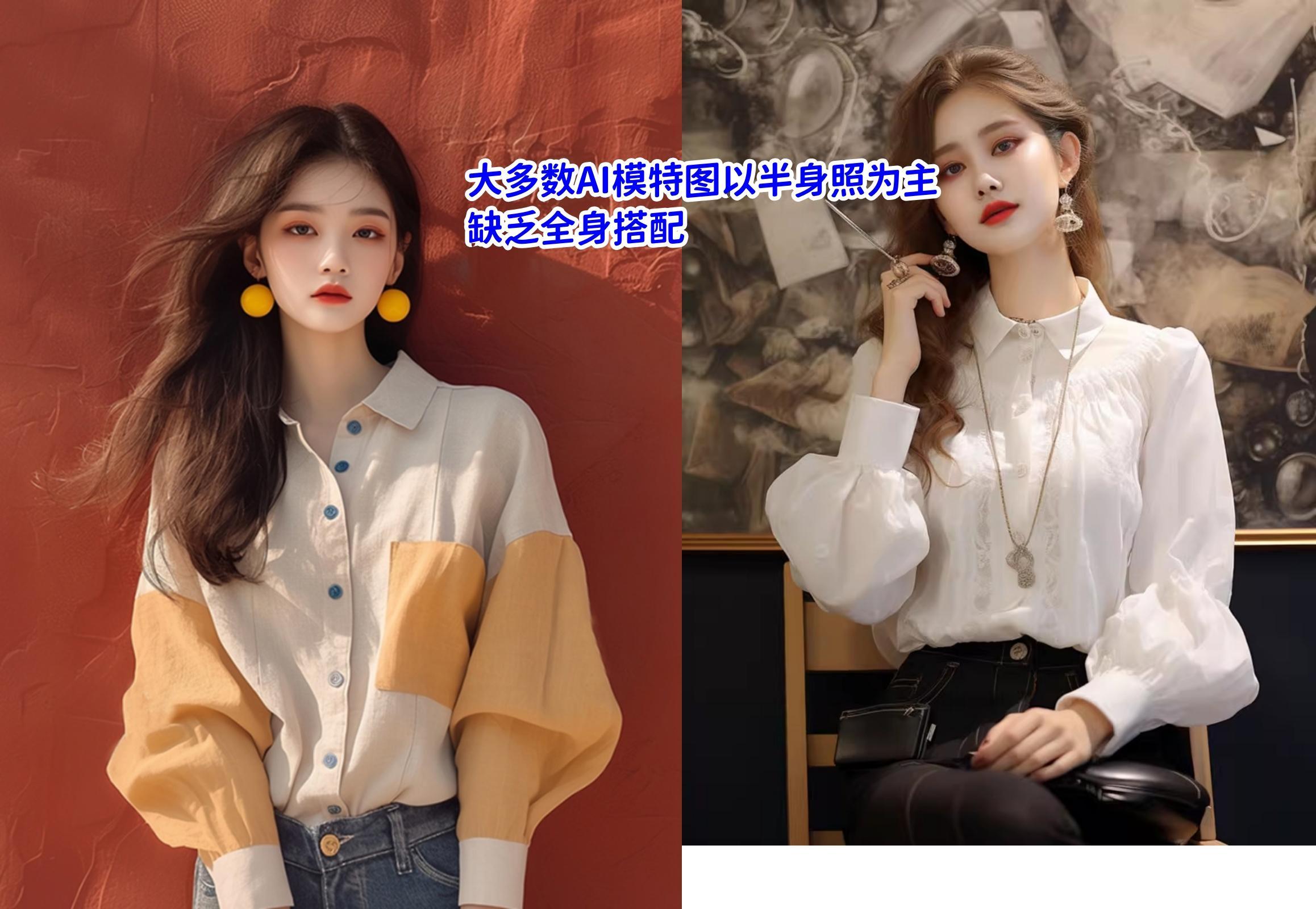 大多數AI模特照以上半身爲主,缺乏全身的搭配,看多了就會發現模特的妝容和臉型都差不多。