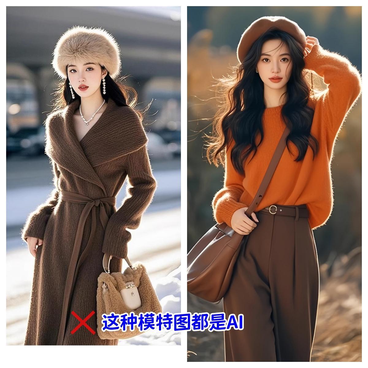 2,AI做圖的衣服是沒有細節圖,橫豎都是一張長着建模精緻的臉+上半身,衣服材質、面料、尺碼、細節都沒有,這種就連基本的詳情頁都湊不齊的商品,你們真的要買嗎?