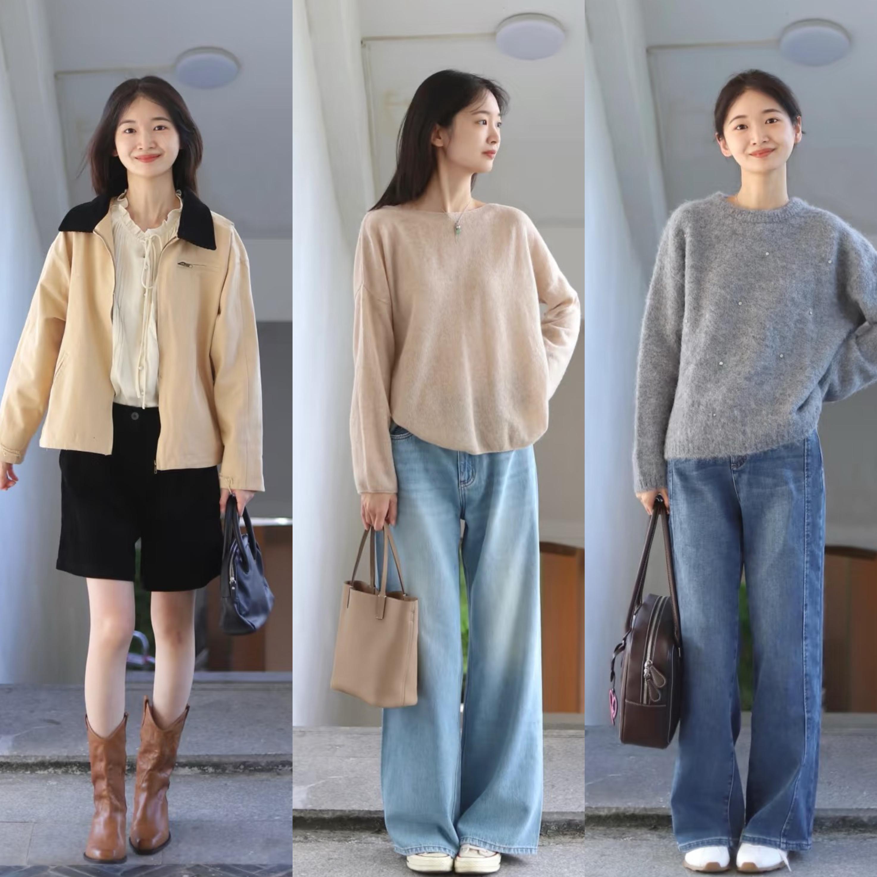 選擇針織衫的時候,可以嘗試搭配柔和的淺色系。比如燕麥色、杏色、淺灰色,都格外的溫柔。