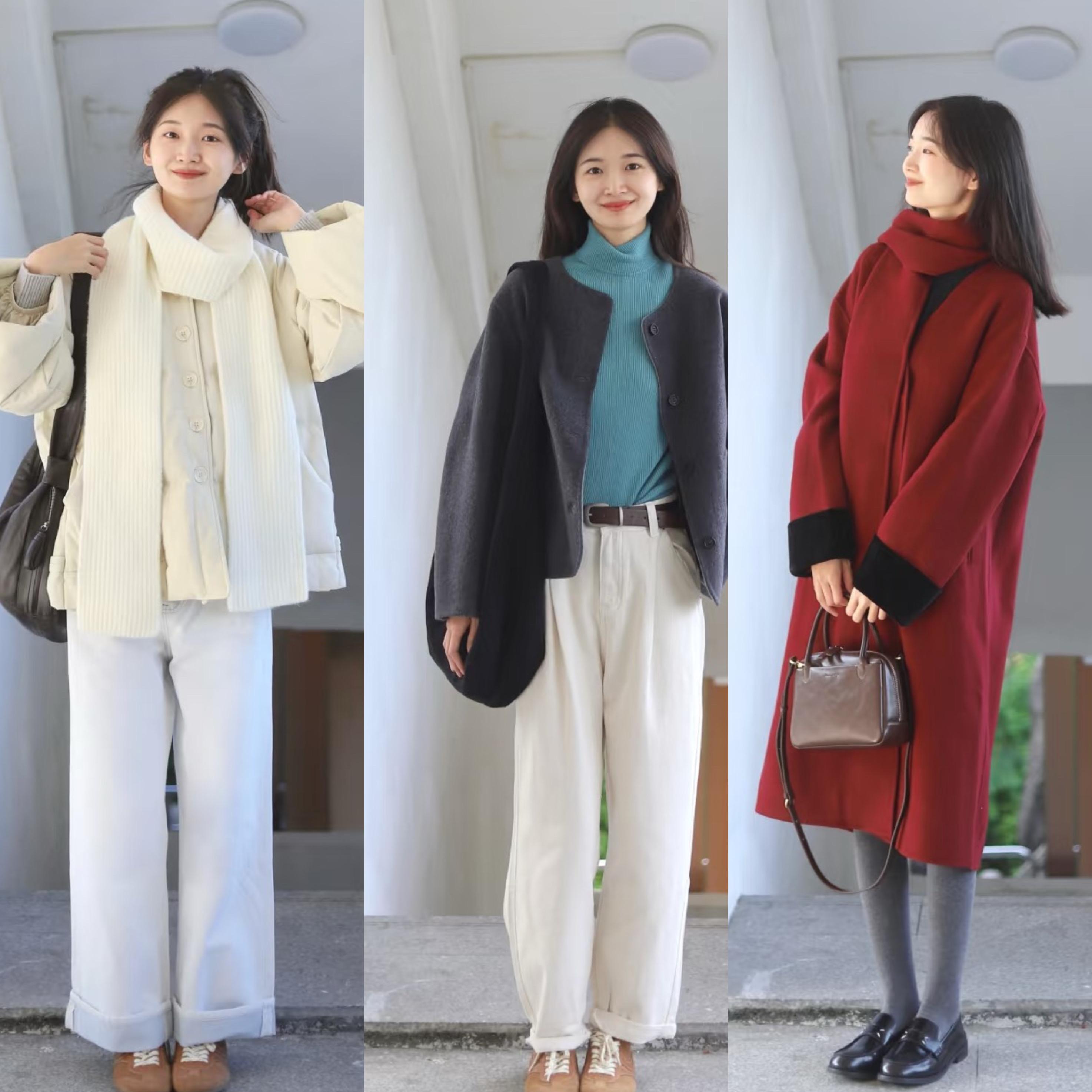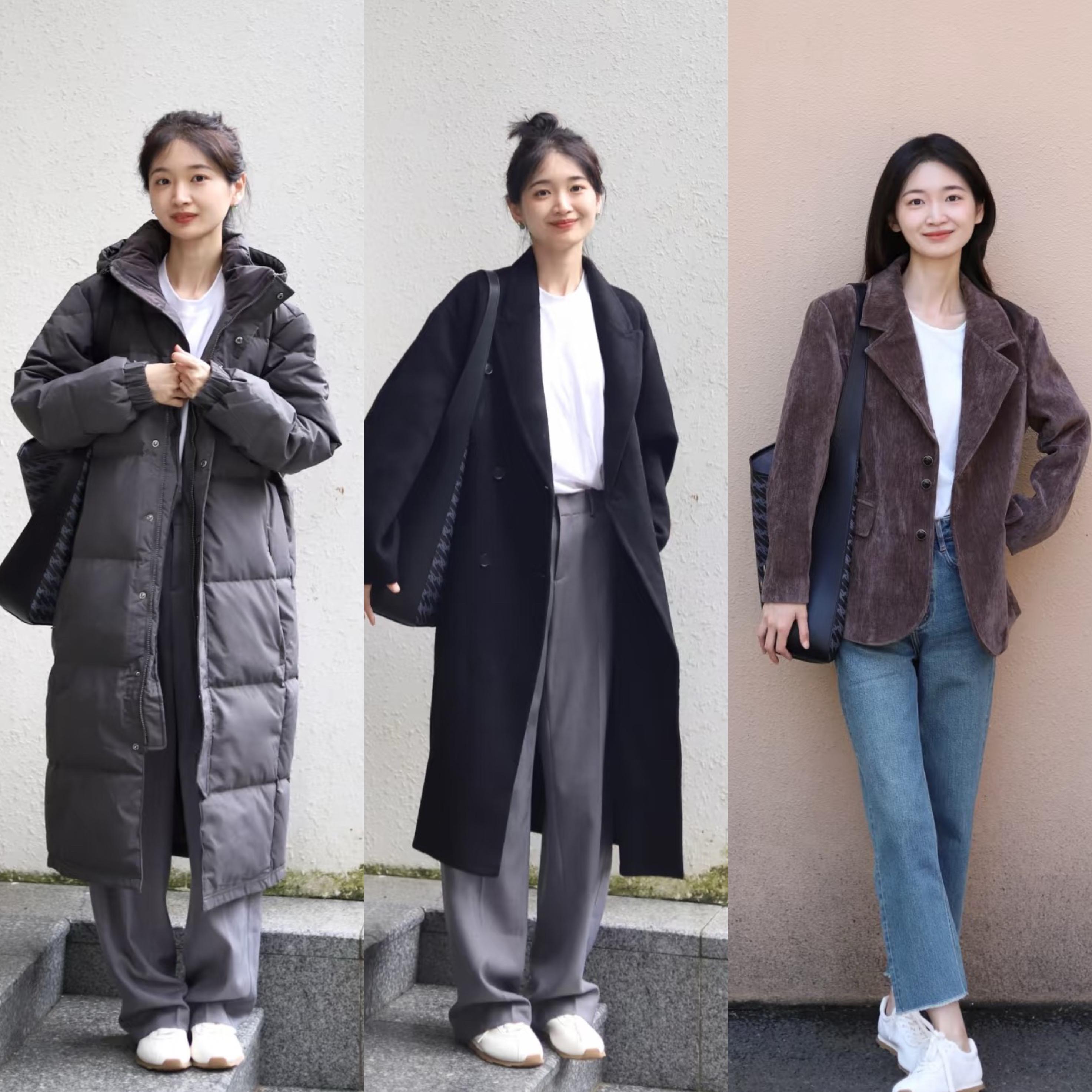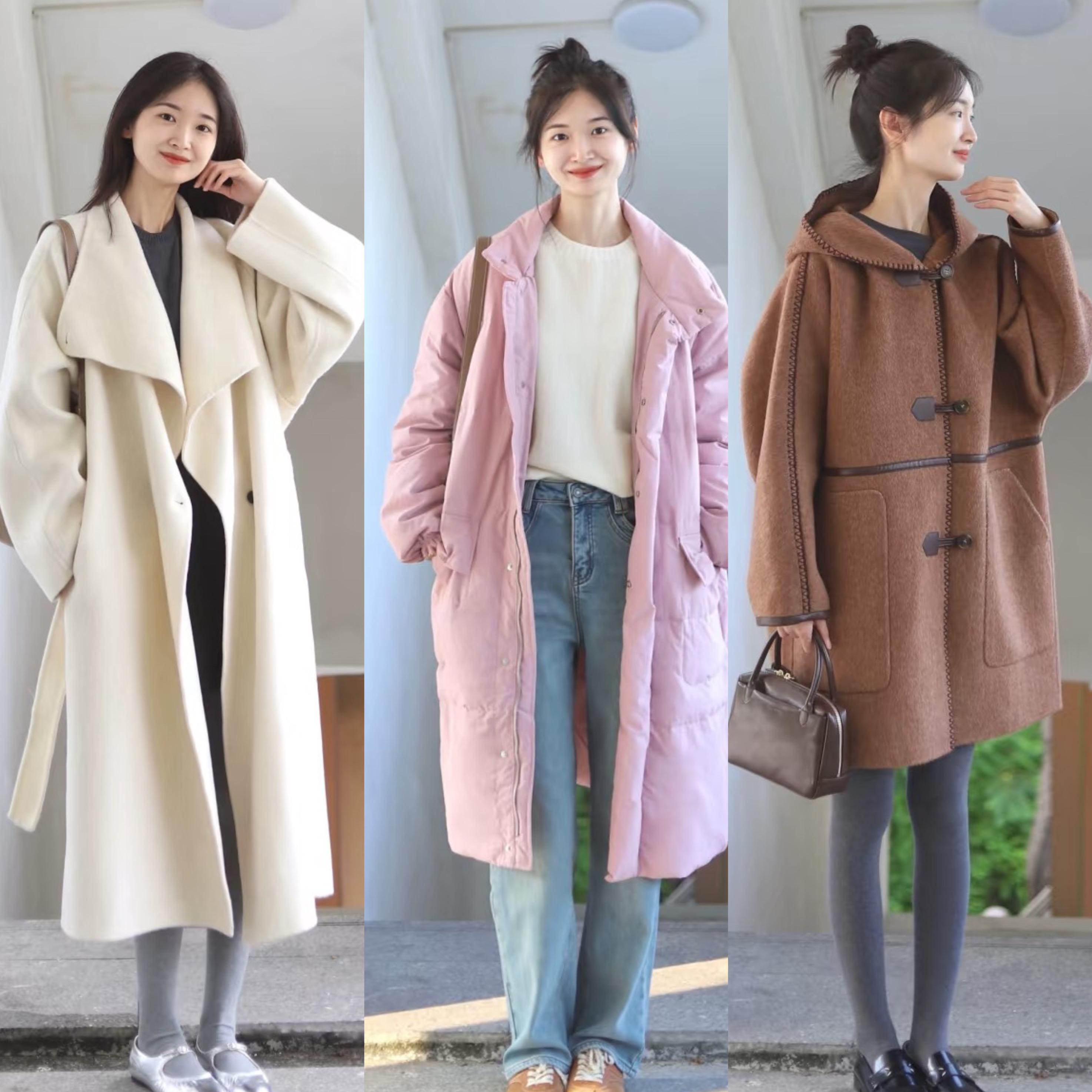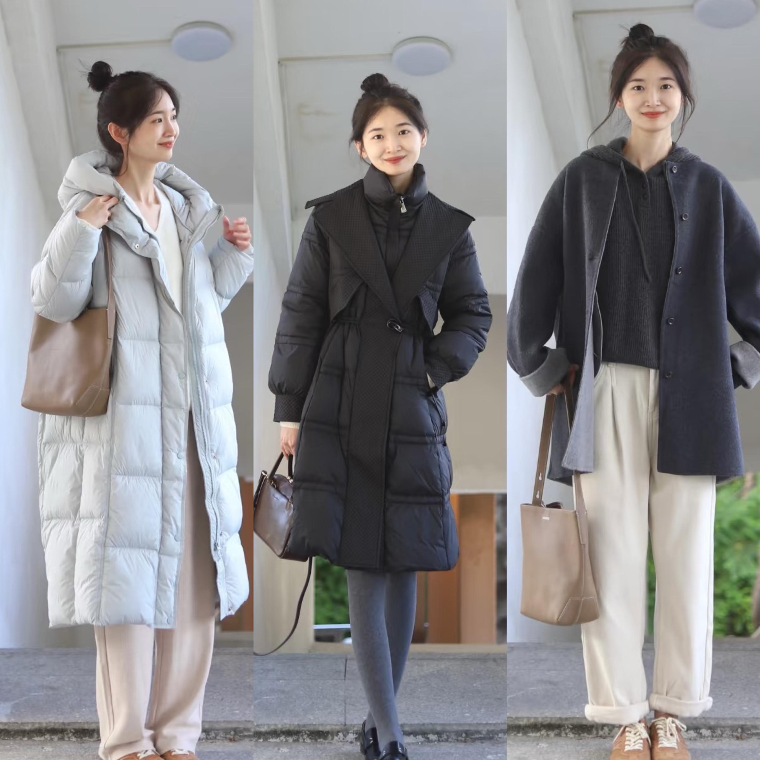 天冷的時候,我們還可以穿一件厚外套來拍針織衫,比如羽絨服、長大衣、棉服,都是不錯的選擇。