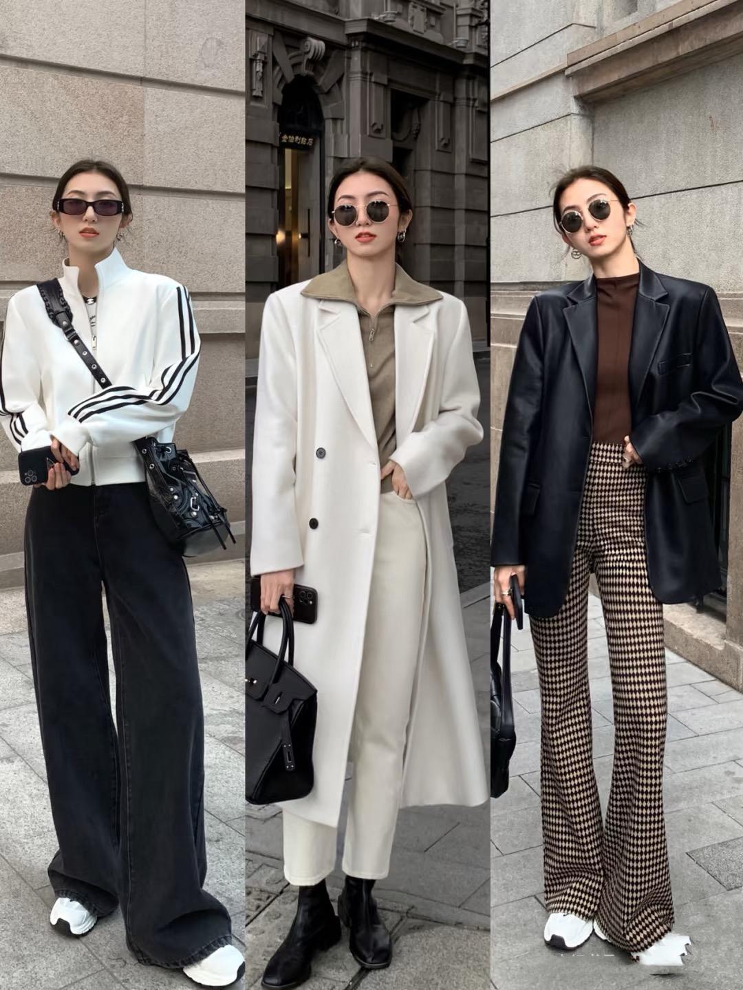 比如黑色皮衣外套、挺括的西裝版型長大衣,以及高腰的西裝風闊腿褲,都是帶着帥氣風格的單品,隨便一穿就很惹眼。