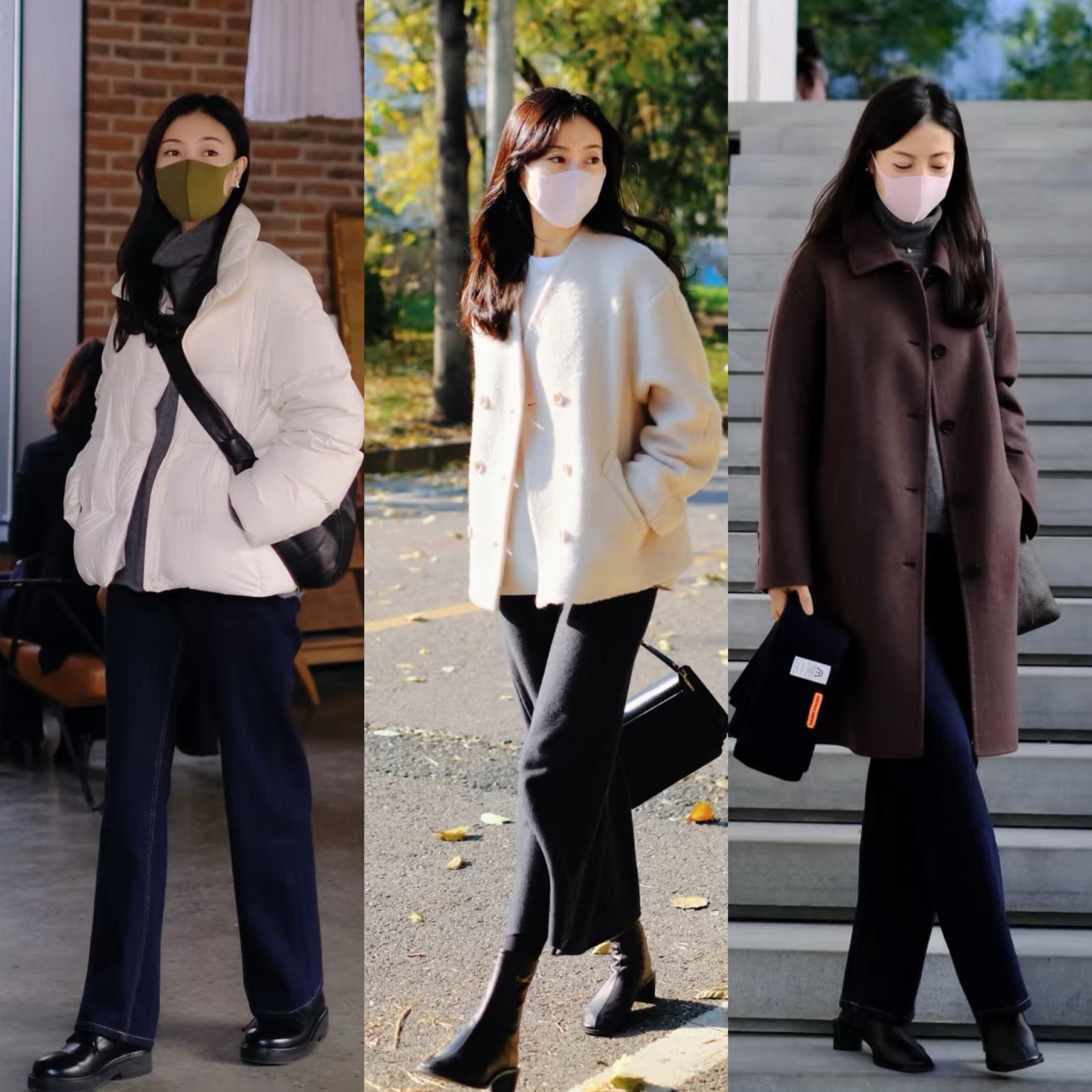 白色短款羽絨服,可以配上黑色直筒褲,那種簡潔高級的美、太讓人喜歡了。黑色直筒褲垂順、流暢,顯高又顯瘦。