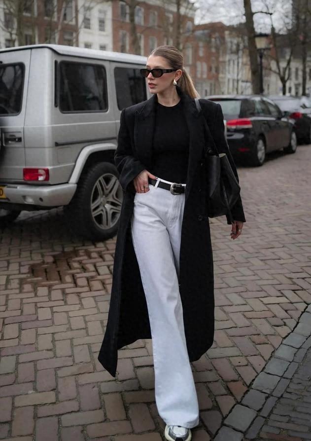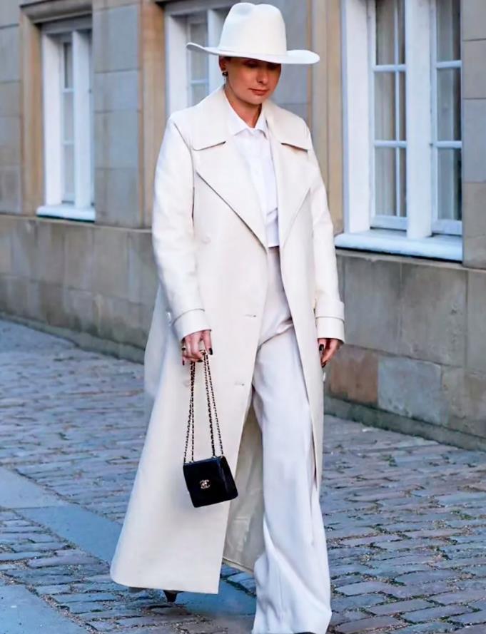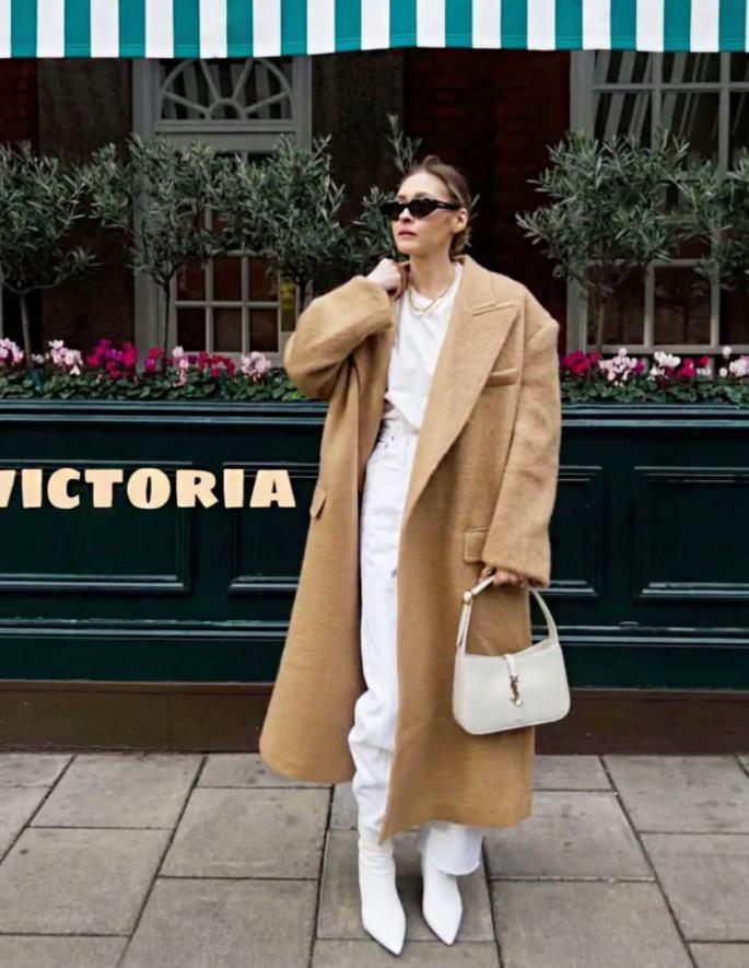 白色的長款大衣,很多姐妹們都覺得這個顏色不耐髒,其實並沒有,奶白色的長大衣,內搭一件白色襯衫,讓你看起來更精緻氣質,這也是冬日最不失高級感的裝扮,搭配起一條白色闊腿褲,會讓你的整個着裝看起來更和諧舒適,搭配起一雙黑色高跟鞋,有種恰到好處的休閒和高級。