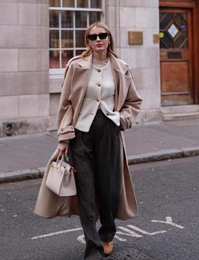 大衣+闊腿褲,今年秋冬太火了,這樣穿時髦極了!
