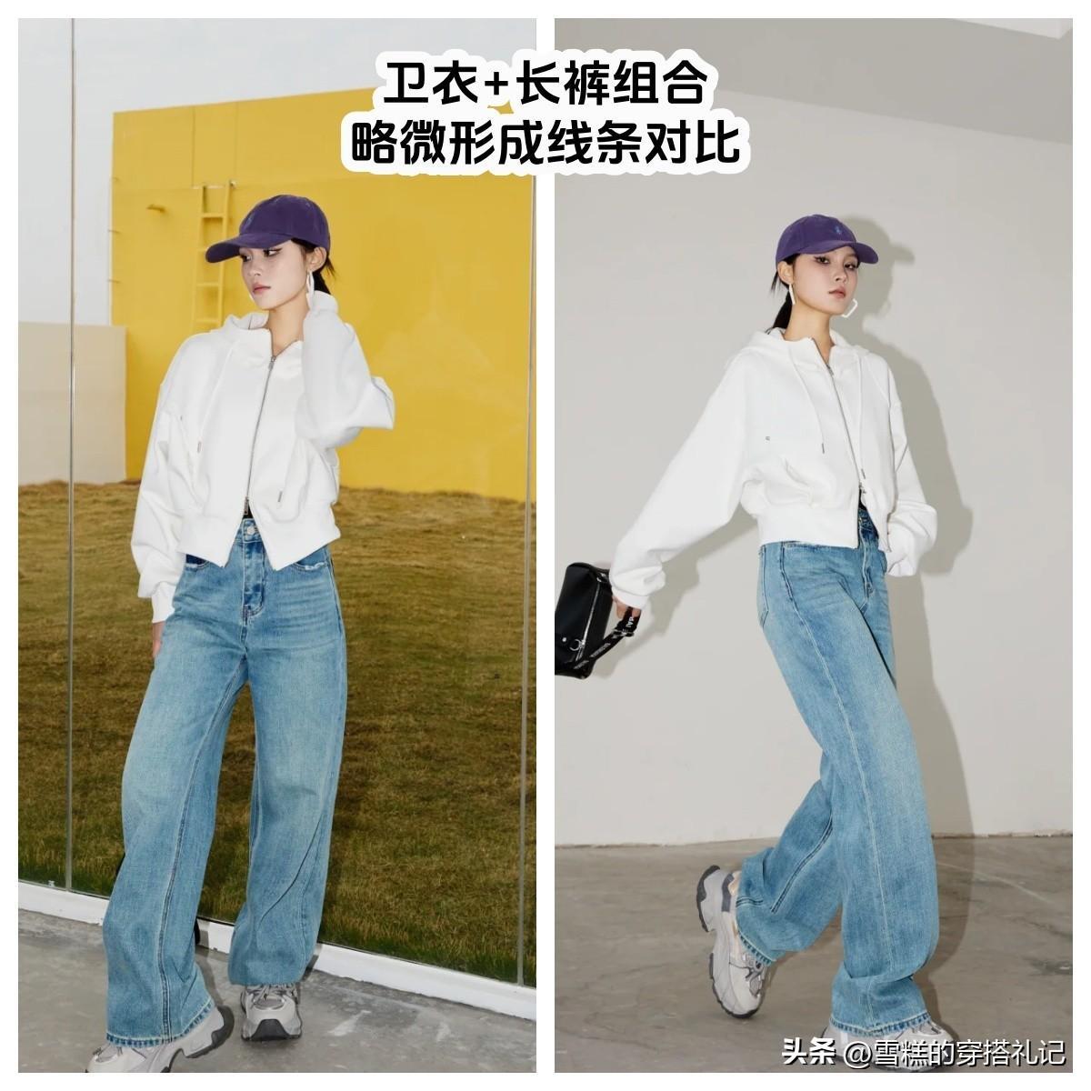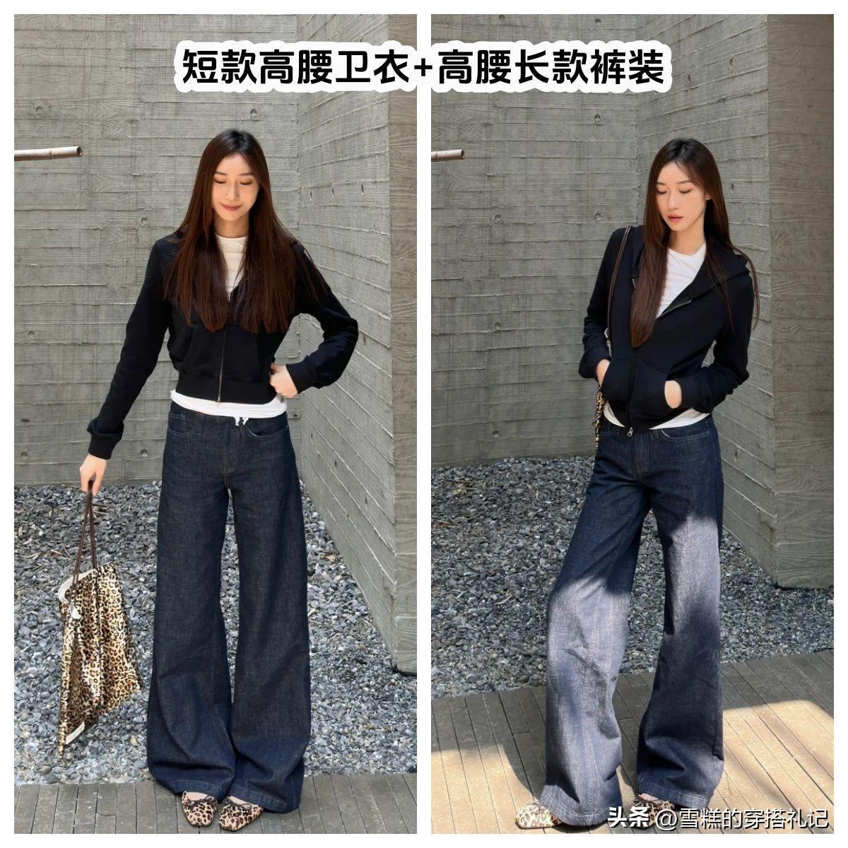 二【 短款衛衣+高腰拖地褲---凸顯身形比例優勢 】