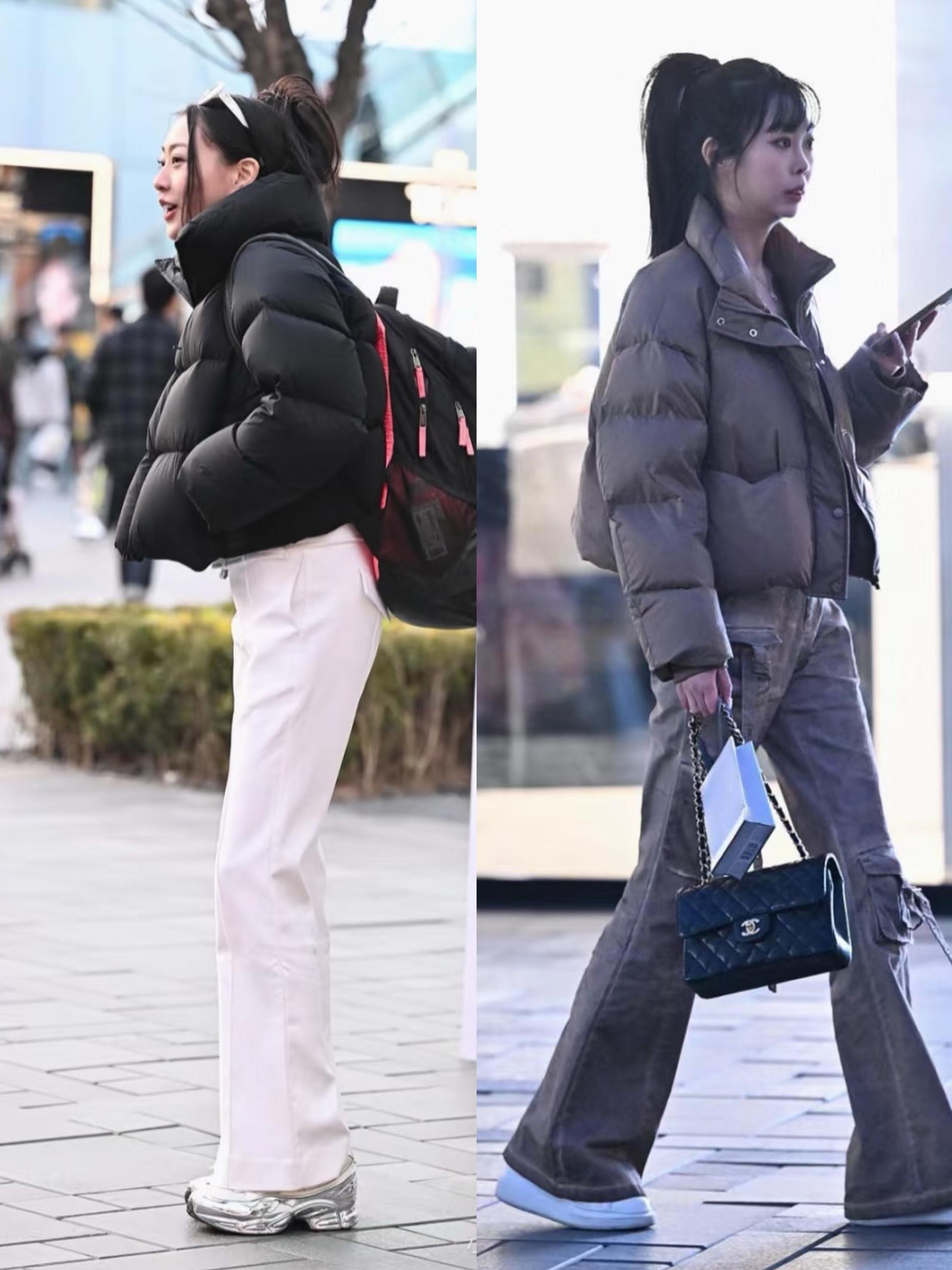 看北京街拍就明白,“短羽絨服+長褲”正流行,時髦保暖顯腿長