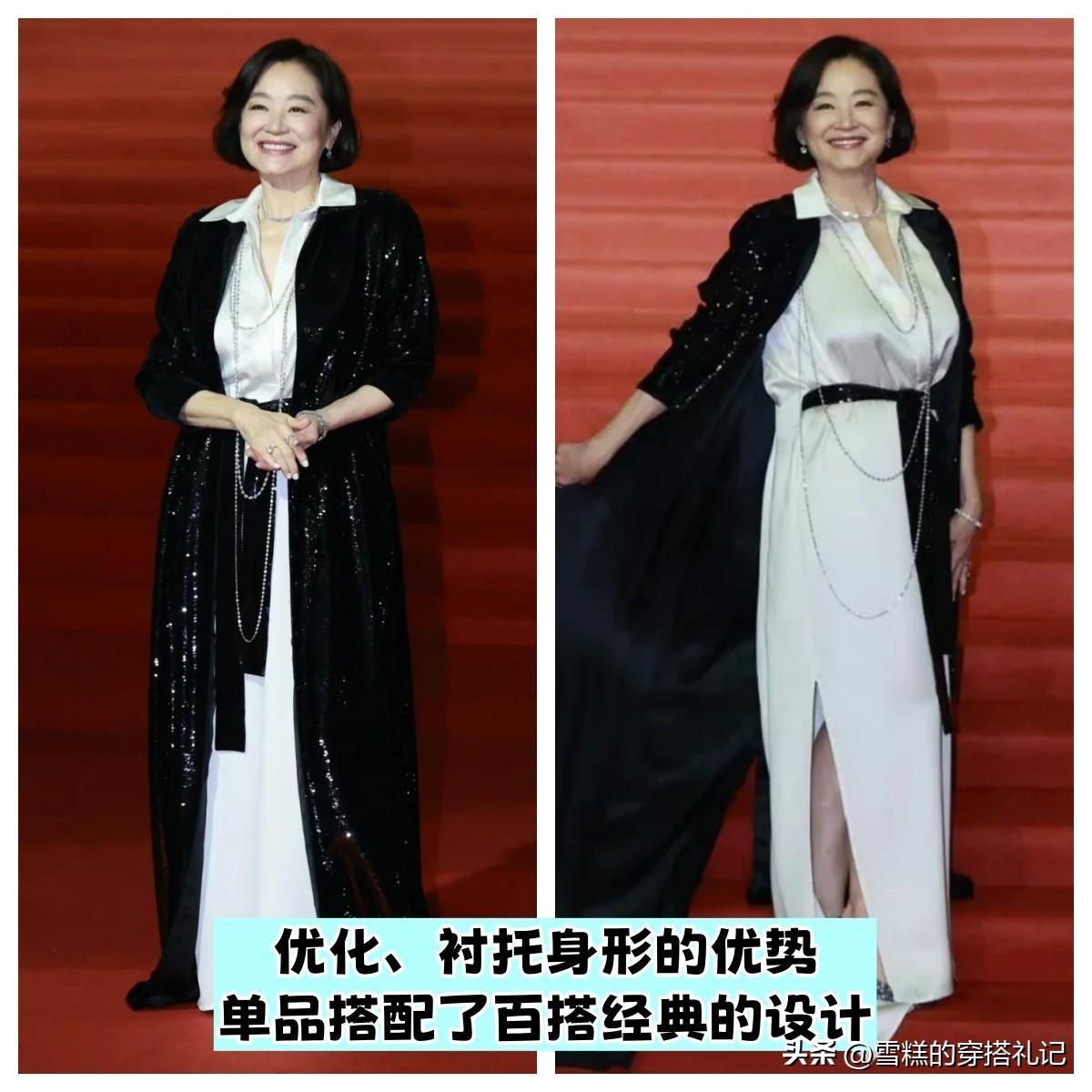 第2點的話就是所選擇的單品,我們要考慮到它是否契合於我們本身的身材狀態,以及是否能夠修飾好我們身材上的一些不足。對於林青霞來說在中老年階段的時候,身材也會有略微的走樣,所以在選擇單品的時候會先遮擋這些不足,再彰顯身形的一些重點優勢。