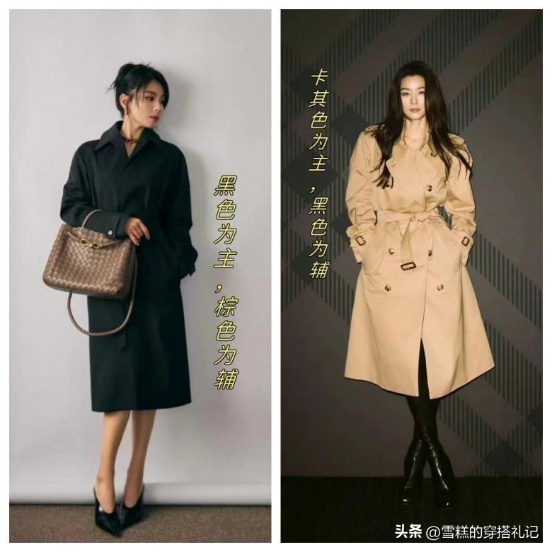 要想讓穿搭盡顯高級感,那麼就要遵循極簡原則。在顏色搭配上,可以主要以兩種色系爲主。例如選擇黑色的風衣和高跟鞋,搭配棕色的包包作爲輔助。高貴而又神祕,以展現出自己獨特的個性和魅力。或者是選擇一件繫帶設計的卡其色風衣,搭配一雙個性十足的黑色長筒靴,呈現出幹練知性的一面。