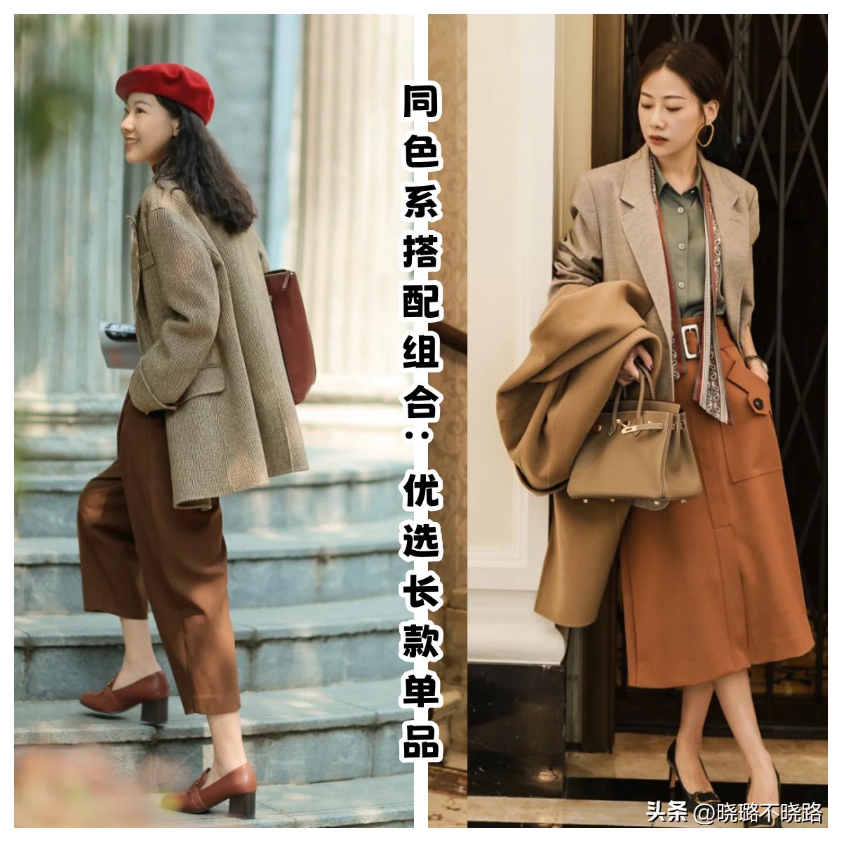 那麼在進行組合搭配的時候,首先當然是可以將同色系列的長款單品與其進行結合。例如像長款的裙裝褲裝都非常的適合在職場通勤的時候搭配,保持自上而下的線條流暢和和諧的優勢。