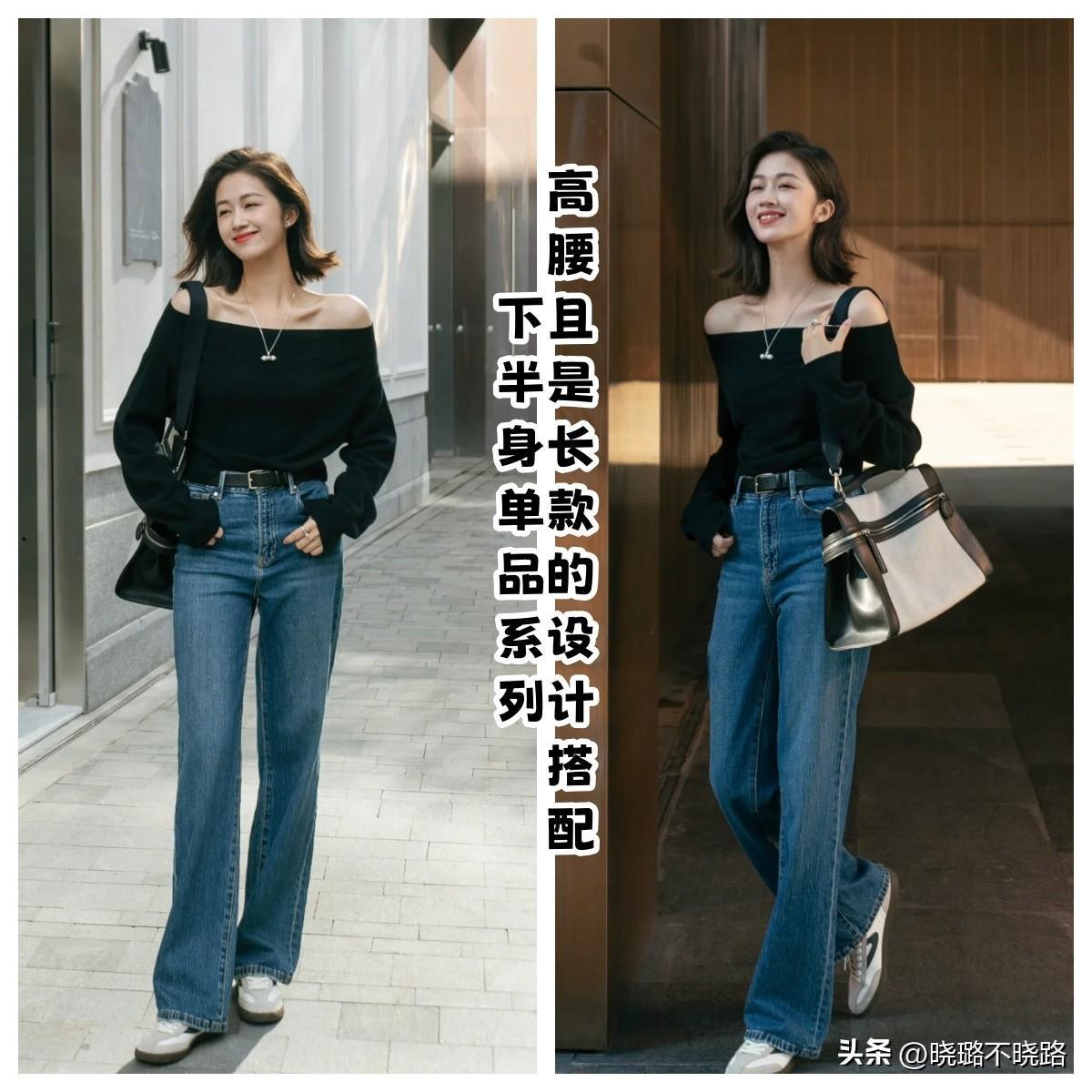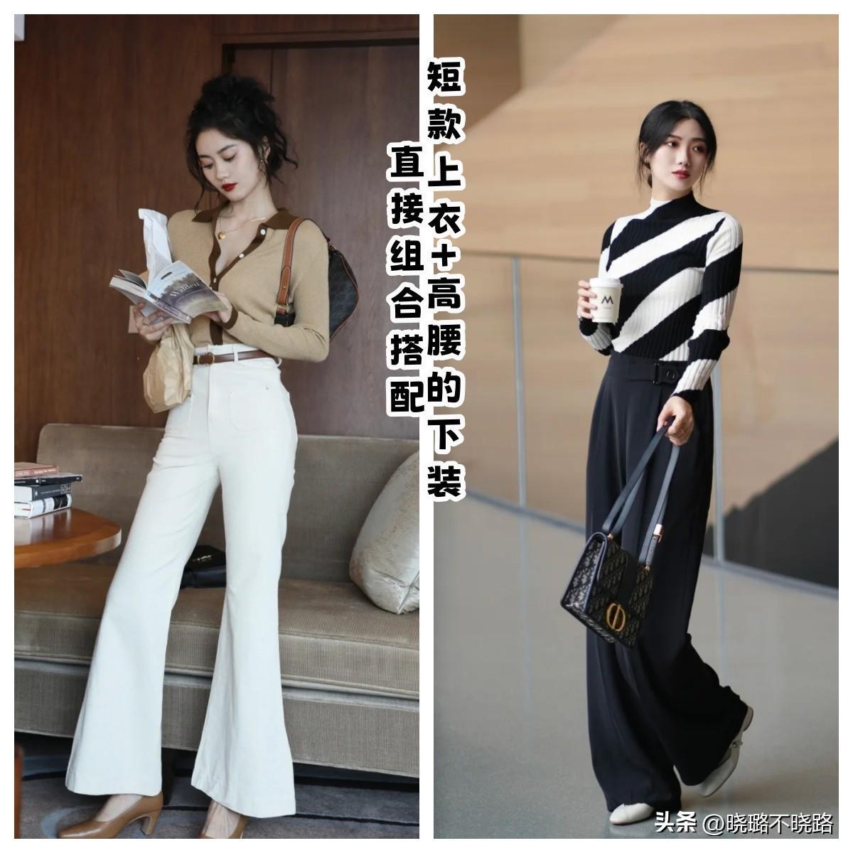 在選擇下半身單品進行搭配的時候,首先是一定要將高腰的版型直接進行入手的,這一點是非常關鍵的點,提升我們腰部分割線的比例位置可以讓上短下長的穿搭直接就營造了出來,對於五五分比例的女性而言這樣的版型不管如何搭配都是極有優勢。
