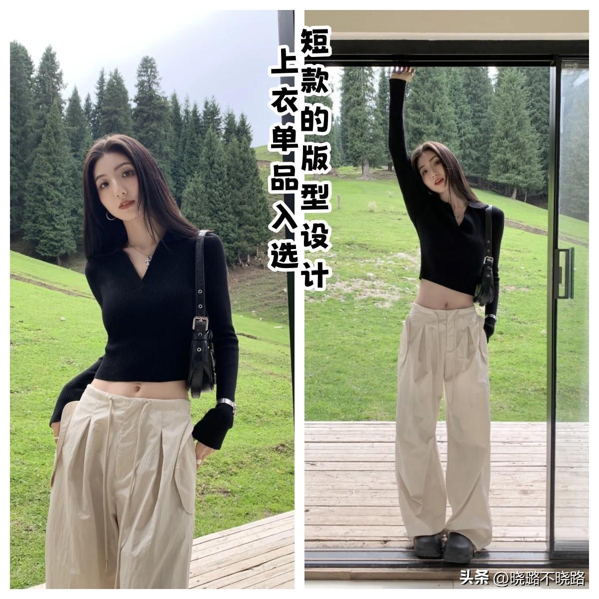 上半身的單品搭配偏短款的設計直接結合高腰且長款的下裝單品,這兩款版型的特點組合起來本身就已經將非常標準的比例給營造出來了。所以大家在入手單品又或者是組合搭配的時候可以直接考慮這樣的搭配系列。