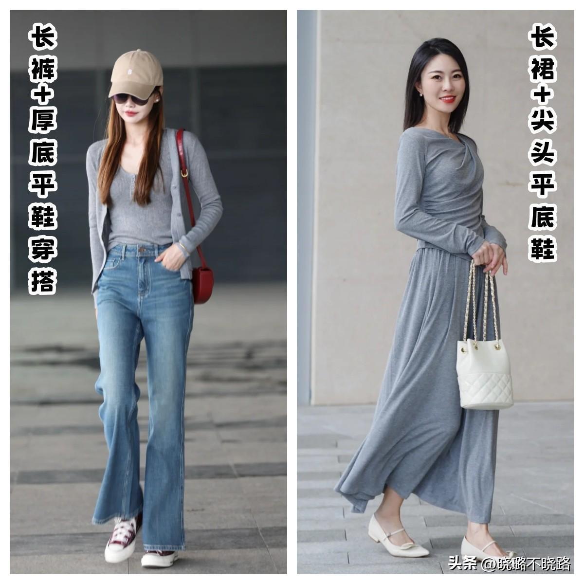 在這裏教給大家一個穿搭小技巧就是如果你搭配的下半身單品是屬於高腰偏長款的拖地褲,那麼在這個時候完全可以將你的平底鞋優先於換乘平底的厚底鞋,這樣在穿搭當中保留了舒適感,同時也增高了我們的身材狀態。如果是長裙的話,那麼就一定要將尖頭的淺口鞋進行入選。