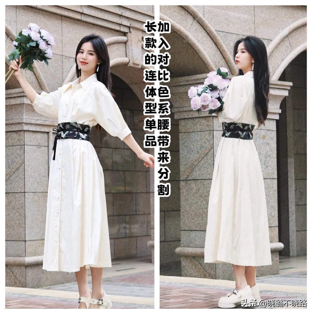 ⓵ 長款單品+對比色腰帶,有視覺分割性