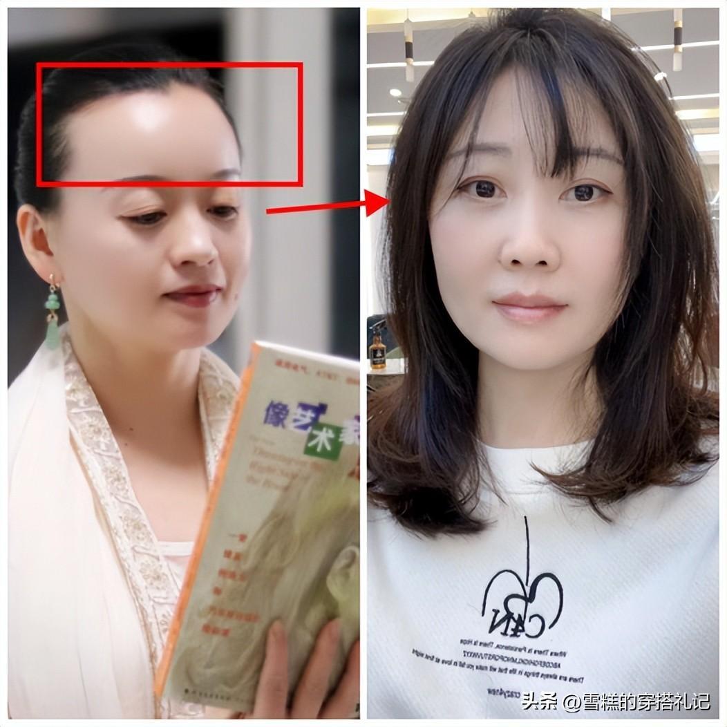 額頭寬且髮際線比較高的女人,不適合露出大面積的額頭,它會將缺點一覽無餘。劉海中當然是更適合齊劉海的造型,但是不要剪的過於厚重,要給額頭有隱隱約約的留白感,這種苦海也叫空氣劉海,這種劉海自然又減齡,讓中年女人年輕好幾歲都不止。