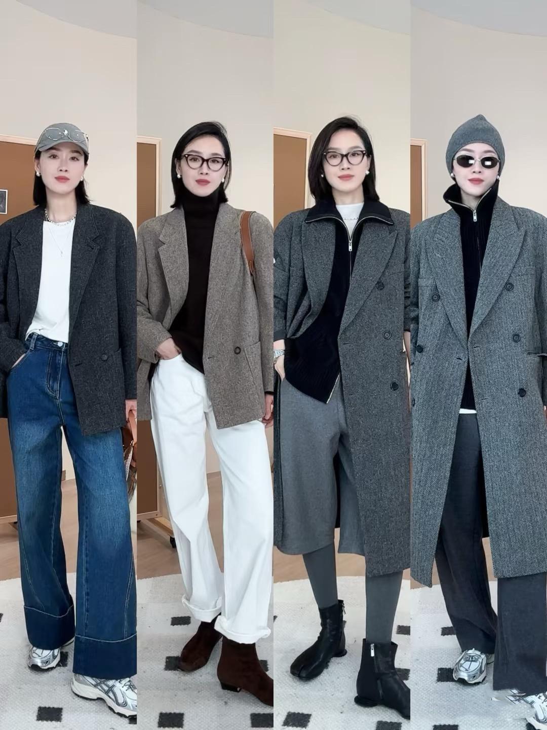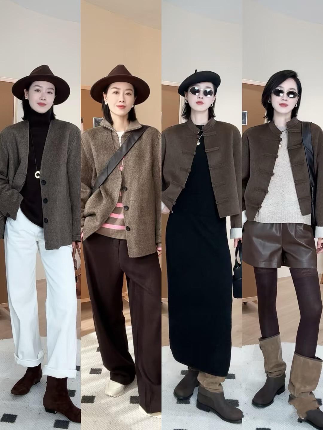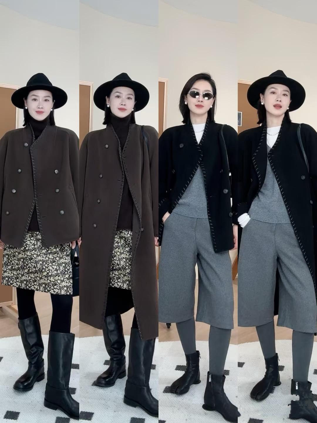 就拿毛呢西服、毛呢大衣來講,作爲外套幹練大氣。內搭可以配打底衫、T恤、半高領毛衣、針織衫,不同的元素變化、就可以呈現不一樣的風格。