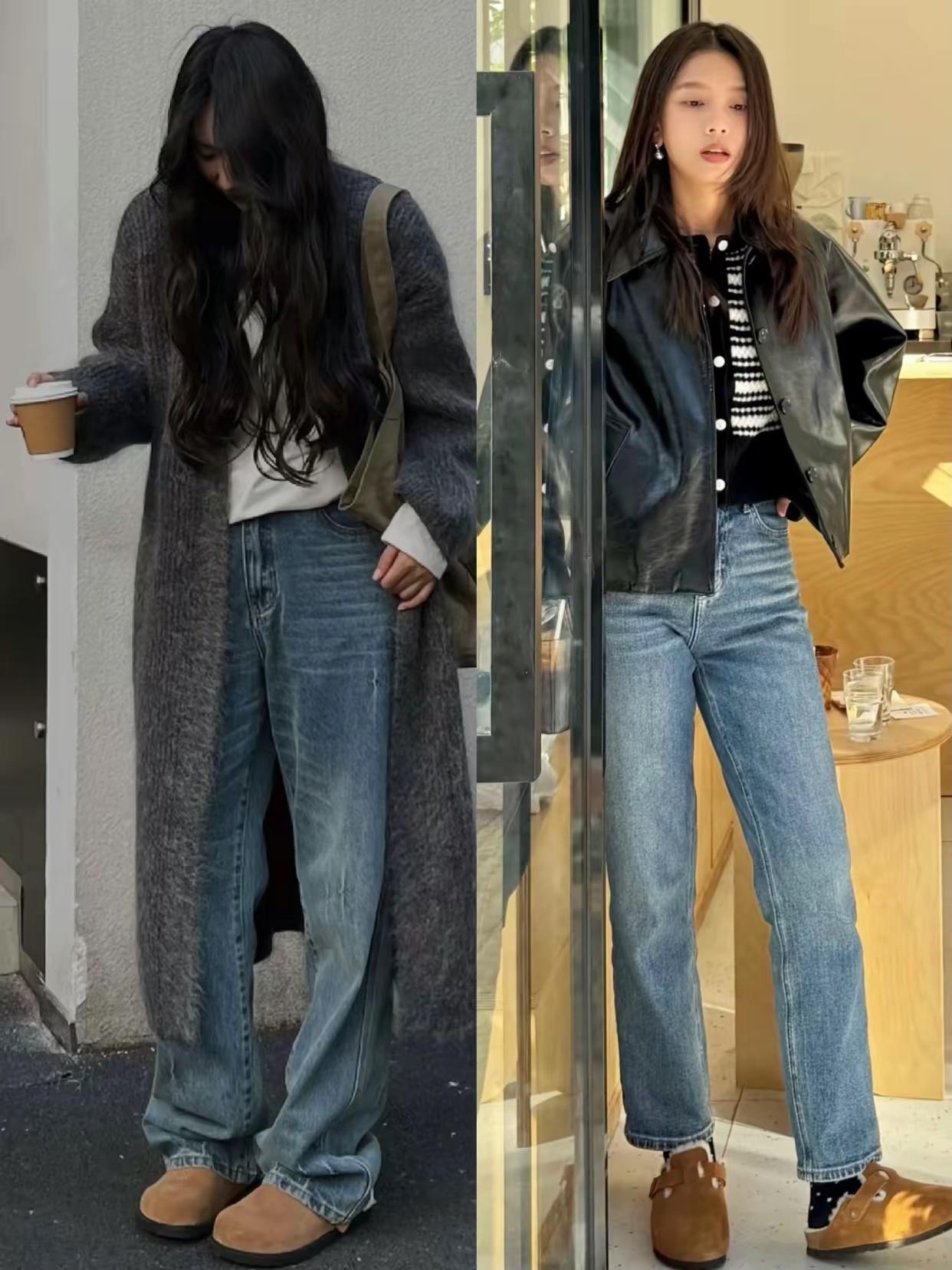 當我們穿着棕色加絨勃肯鞋的時候,可以配高腰的直筒褲來穿着。高腰的直筒褲,可以配修身的褲筒來穿着,很利落也很顯腿長。