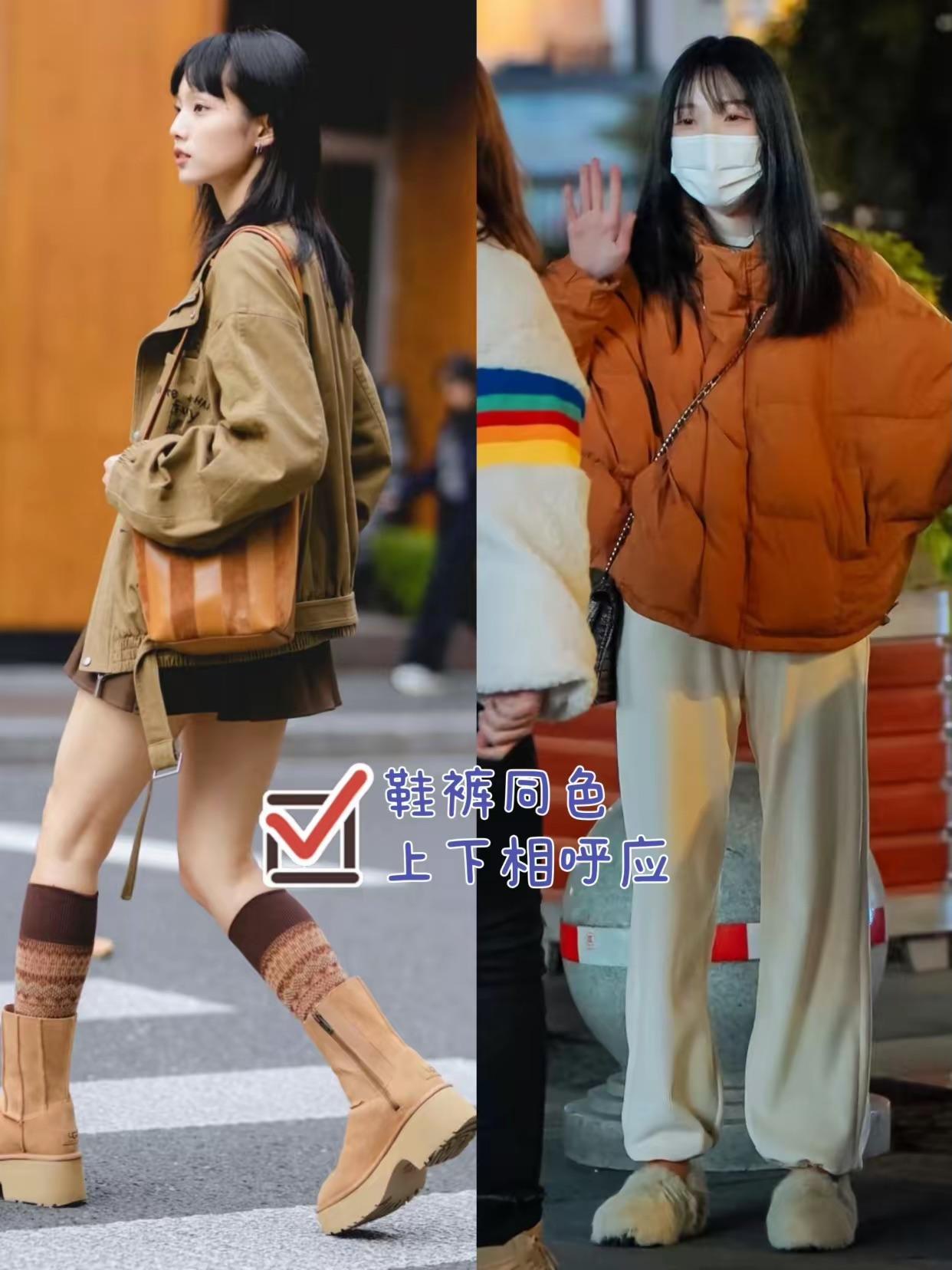 鞋褲同色或者上下呼應的穿搭,都是一種非常協調的搭配。尤其是鞋褲同色,更加顯高、也比較顯腿長。