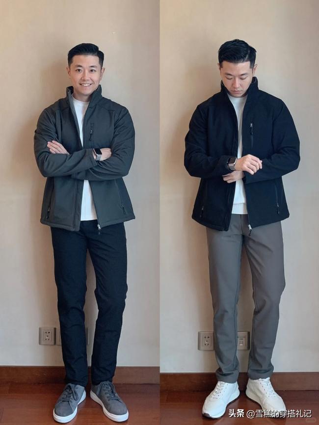 對於中年男士而言,不論身材如何,穿衣的核心始終是“塑造身形”。其中,腰線對整體造型的影響至關重要。因此,建議選擇到腰的短款夾克,這樣不僅能提升腰線,還能更好地展現腿部線條,呈現出理想的三七身段,達到顯高顯瘦的效果。