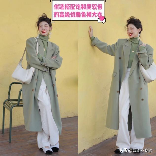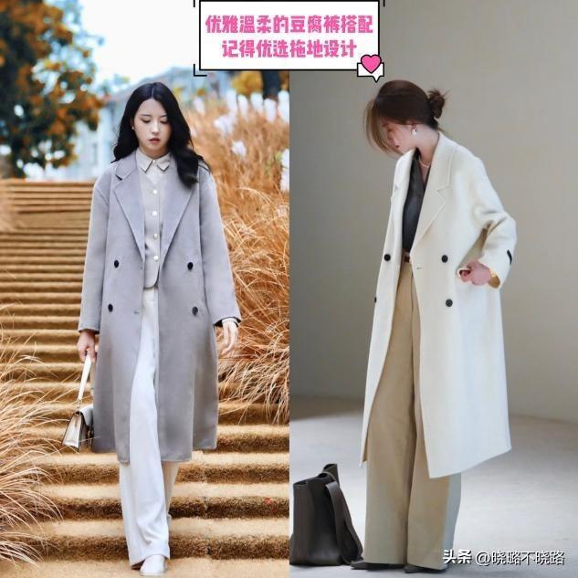 豆腐褲的搭配如果所選擇的結合單品是大衣或者風衣這兩款系列的話,那麼就建議大家在色系上避免同色系,還是要將高級又有質感的低飽和度彩色項列爲優選,搭配起來的時候整體的高級感和優雅感非常明顯,視覺上的層次感也更爲豐富一些。