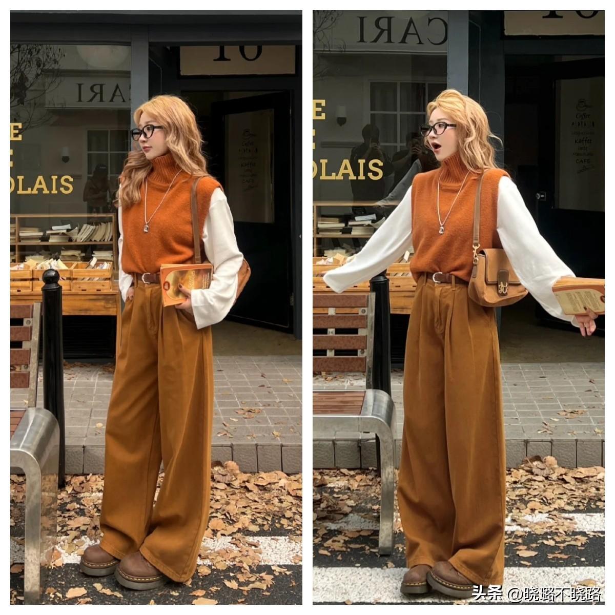 大地色系的單品進行組合搭配的時候,在視覺上的層次感要凸顯明顯的效果,就建議各位完全可以利用材質的不同來進行選擇。例如比較硬朗的材質結合比較軟糯的面料,尤其是在疊穿的時候,這樣的效果真的非常的具有立體感哦。